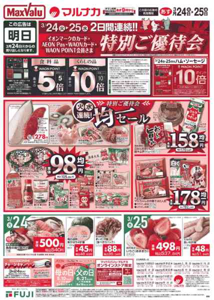 特売やセール情報など最新のチラシを掲載中。(1種類、2枚のチラシを掲載しています)
