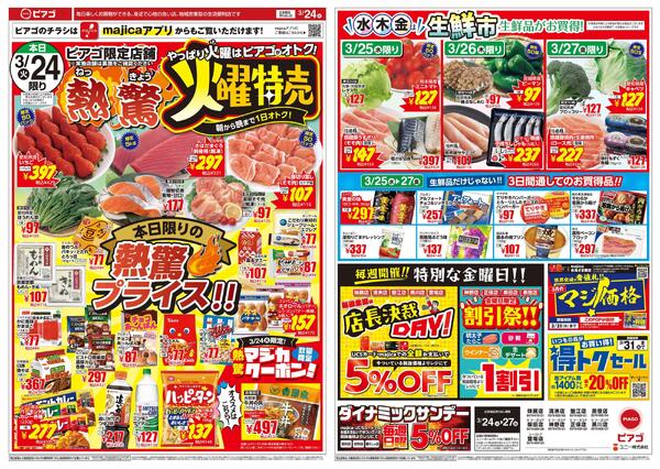 特売やセール情報など最新のチラシを掲載中。(3種類、4枚のチラシを掲載しています)