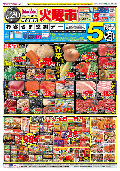特売やセール情報など最新のチラシを掲載中。(2種類、5枚のチラシを掲載しています)