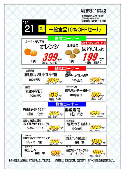 ※「店舗の掲載内容について」チラシガイドに掲載している情報は、独自に調査した内容及びユーザーから頂いた情報を掲載しています。お気づきの点がございましたら「お問い合わせ」よりご連絡ください。また店舗の営業状況、商品に関するお問い合わせは直接店舗事業者にご確認ください。