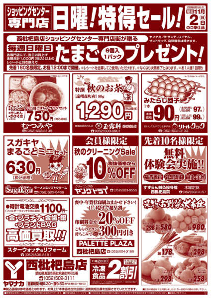 ※「店舗の掲載内容について」チラシガイドに掲載している情報は、独自に調査した内容及びユーザーから頂いた情報を掲載しています。お気づきの点がございましたら「お問い合わせ」よりご連絡ください。また店舗の営業状況、商品に関するお問い合わせは直接店舗事業者にご確認ください。