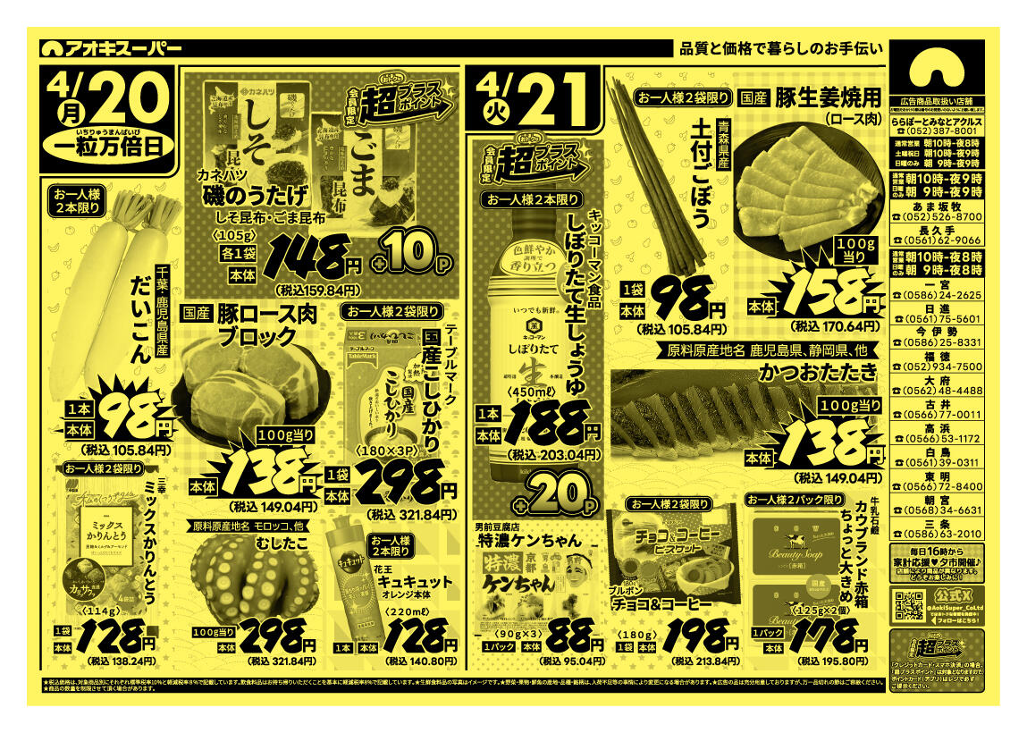 アオキスーパー長久手店今週のチラシ(2026年4月13日〜4月19日)