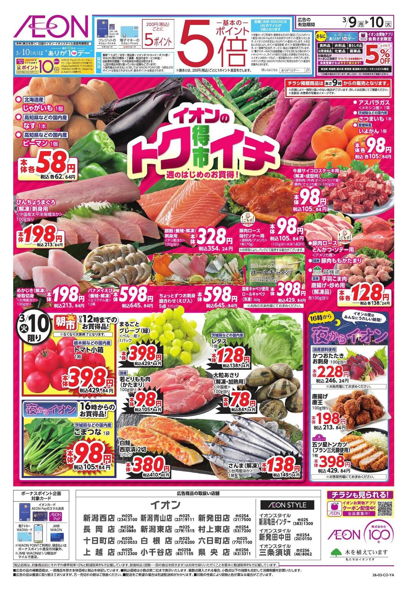 イオン新潟青山店今週のチラシ(2026年3月9日〜3月15日)