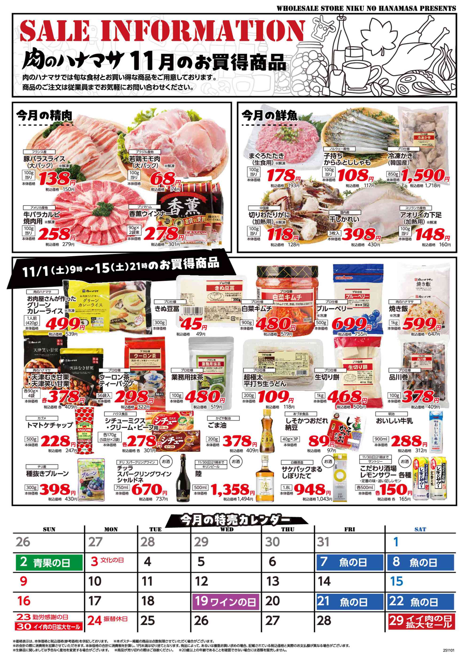 肉のハナマサ三軒茶屋店今週のチラシ(2025年11月3日〜11月9日)
