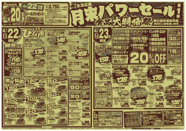 ※「店舗の掲載内容について」チラシガイドに掲載している情報は、独自に調査した内容及びユーザーから頂いた情報を掲載しています。お気づきの点がございましたら「お問い合わせ」よりご連絡ください。また店舗の営業状況、商品に関するお問い合わせは直接店舗事業者にご確認ください。