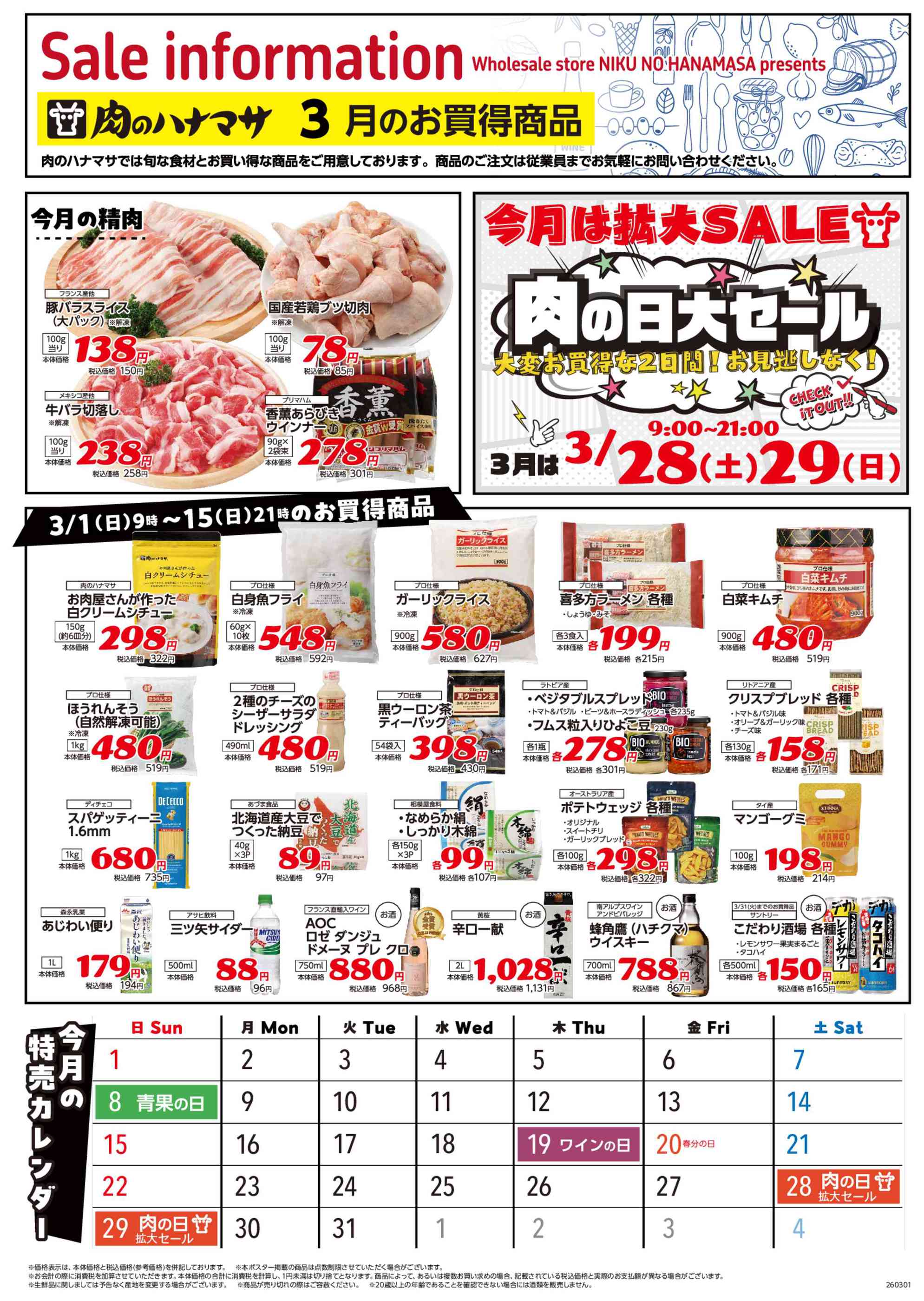 肉のハナマサ野方店今週のチラシ(2026年3月23日〜3月29日)