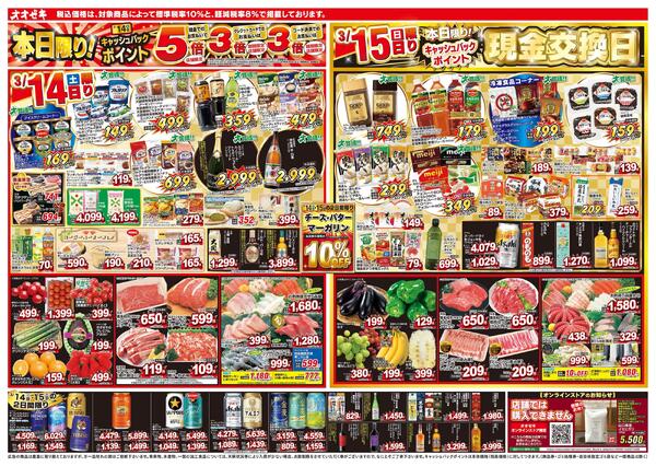 特売やセール情報など最新のチラシを掲載中。(2種類、5枚のチラシを掲載しています)