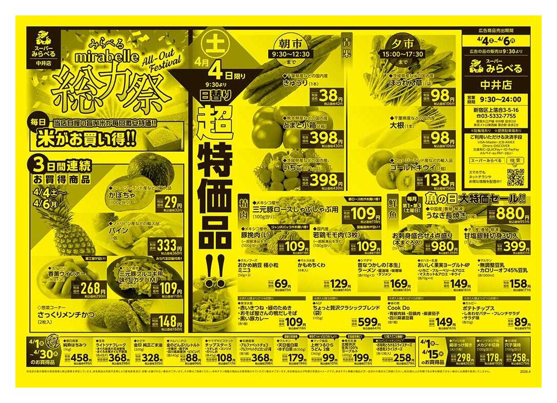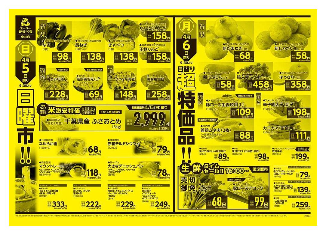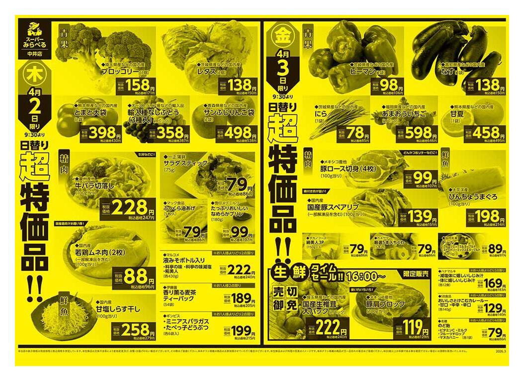 スーパーみらべる中井店今週のチラシ(2026年3月30日〜4月5日)