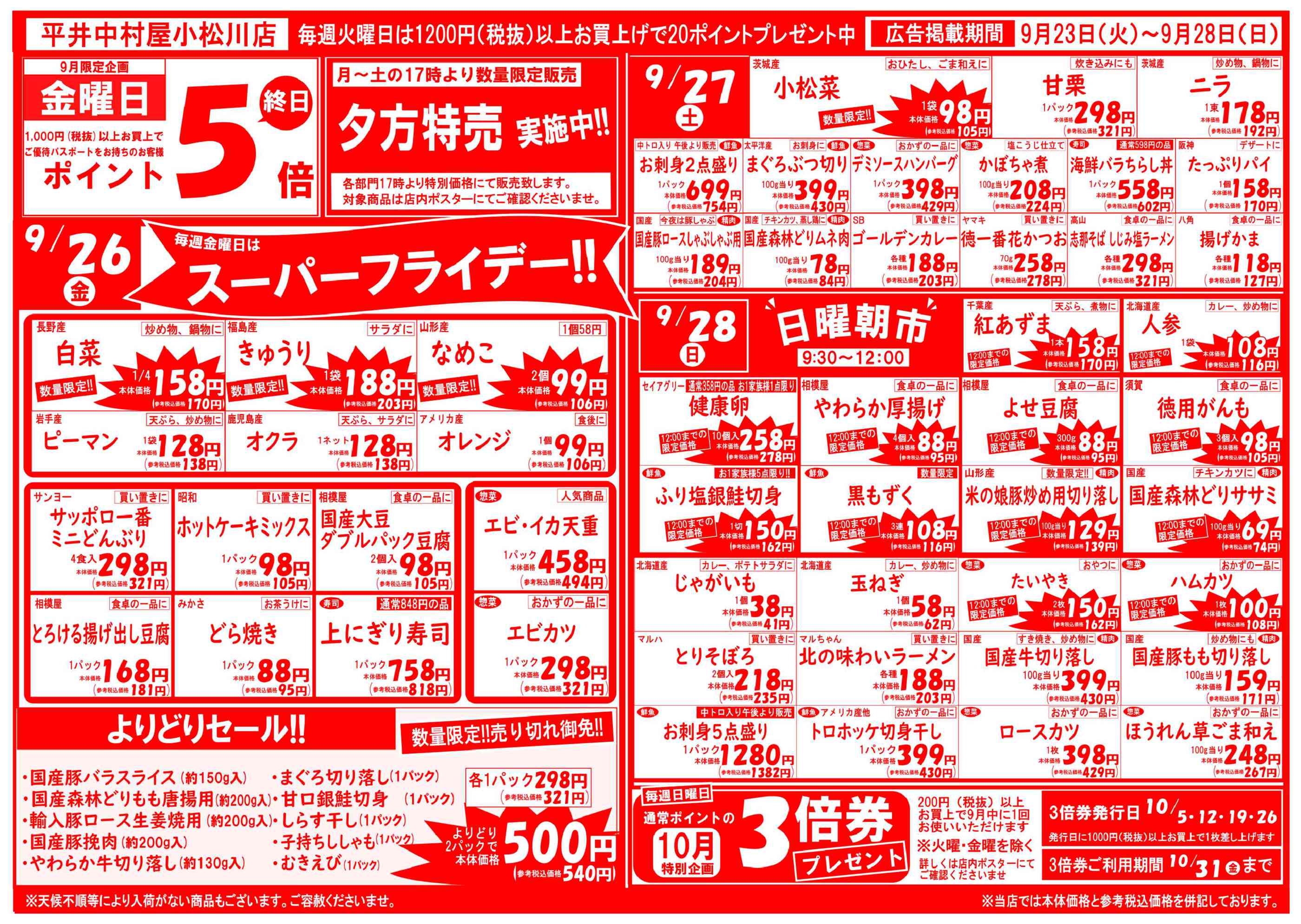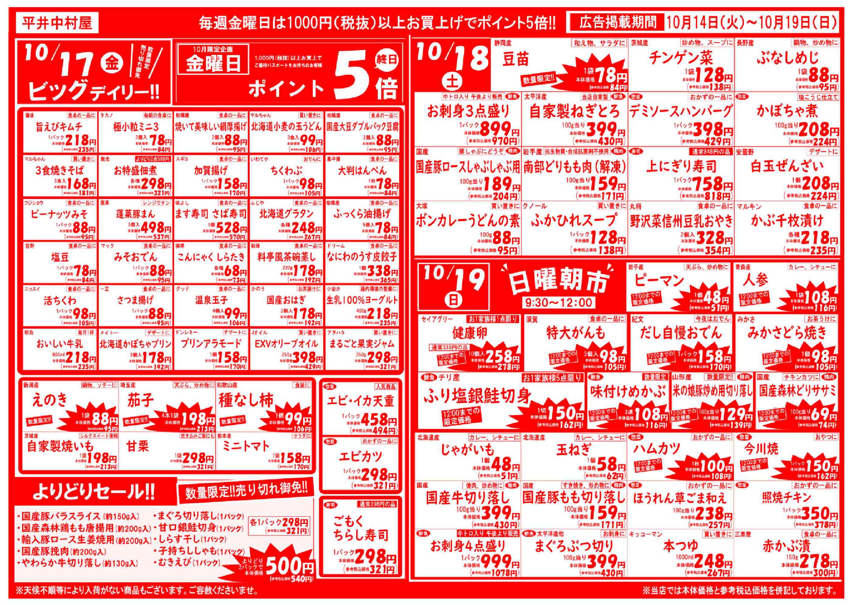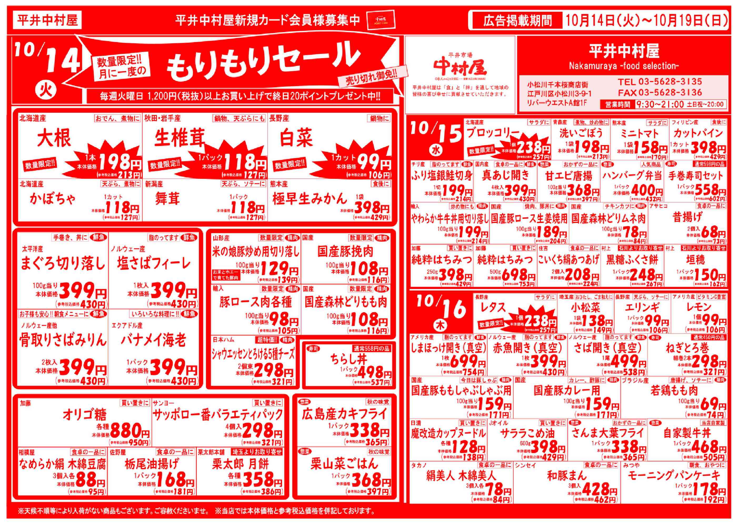 平井中村屋小松川店今週のチラシ(2025年10月13日〜10月19日)