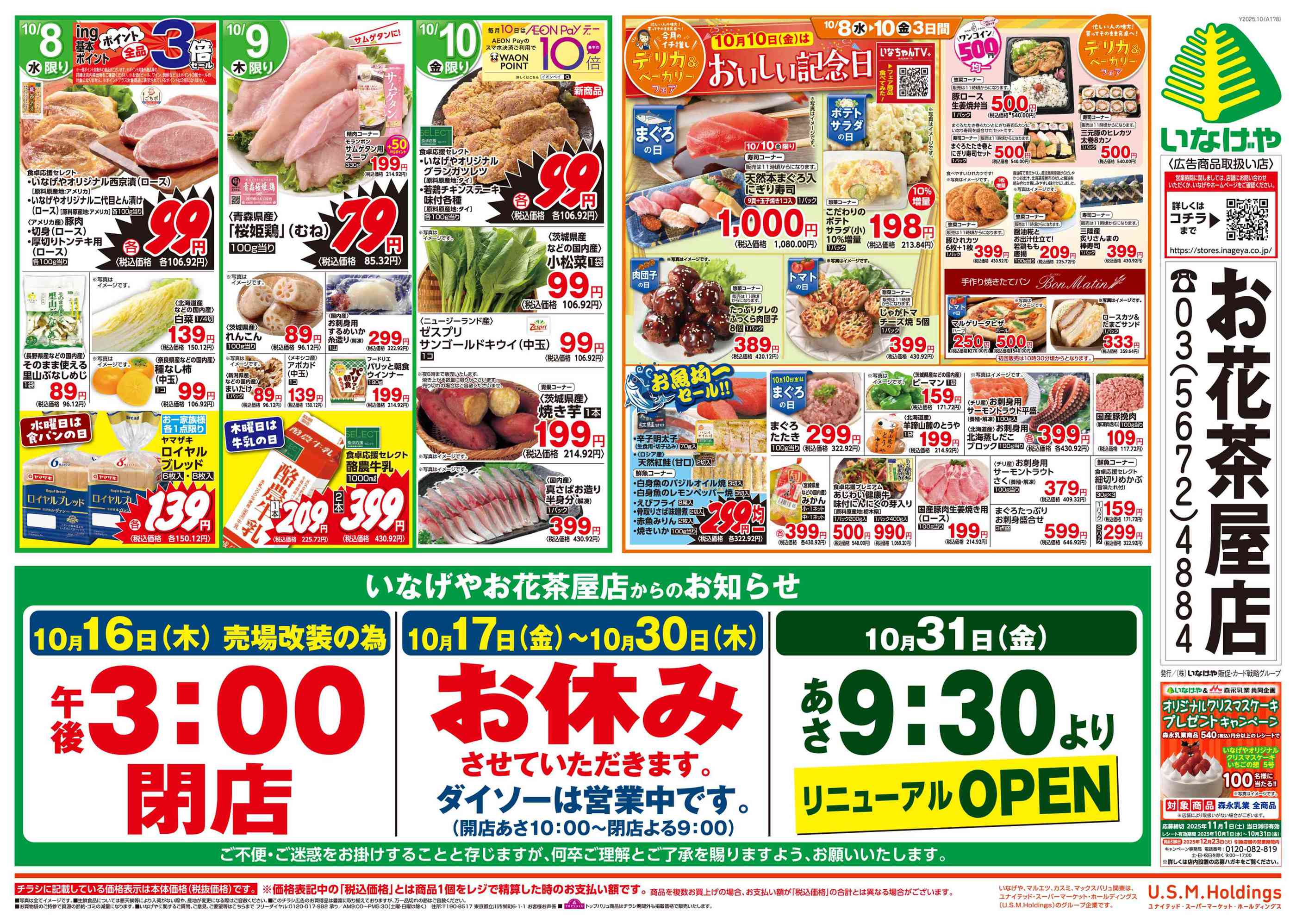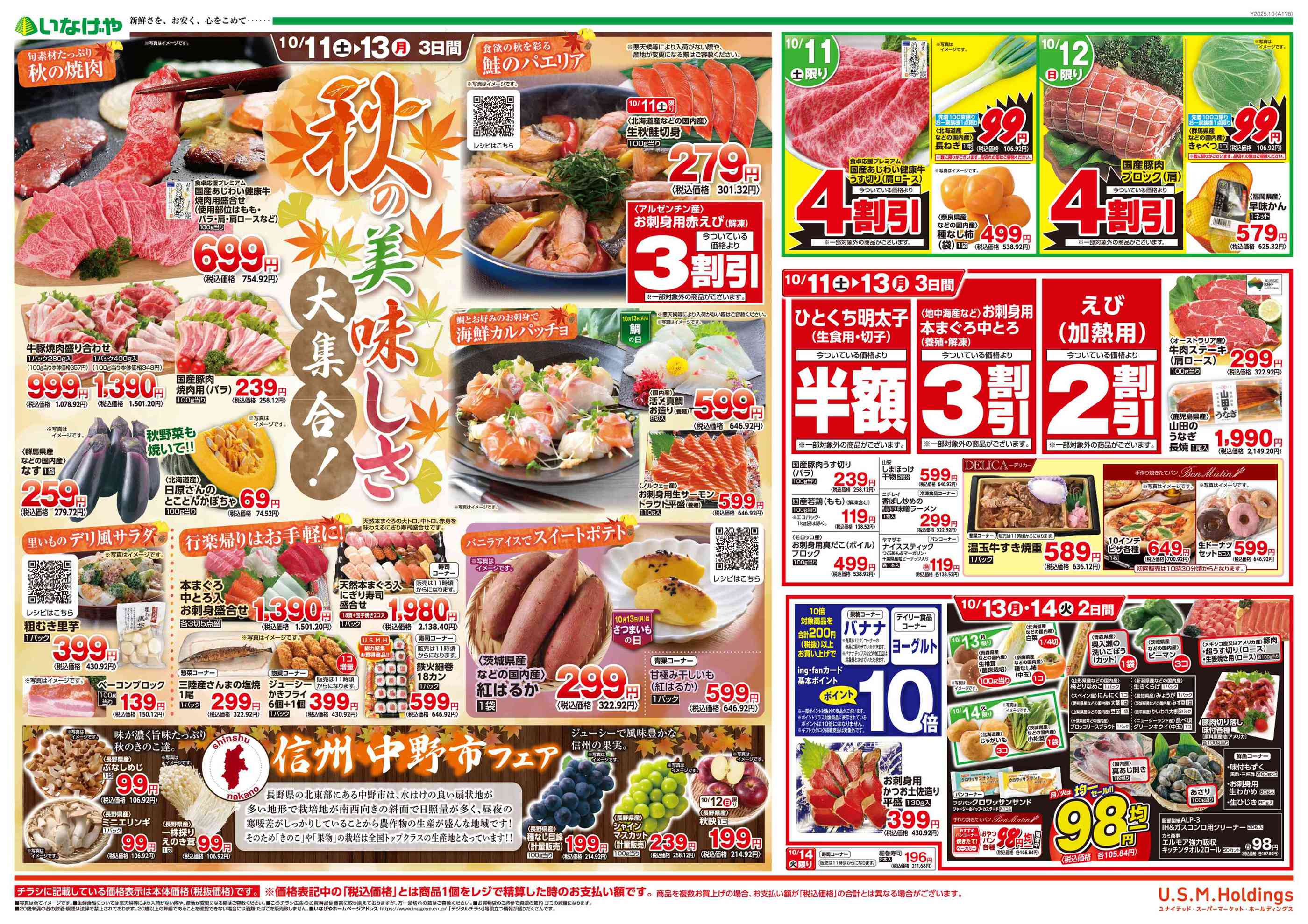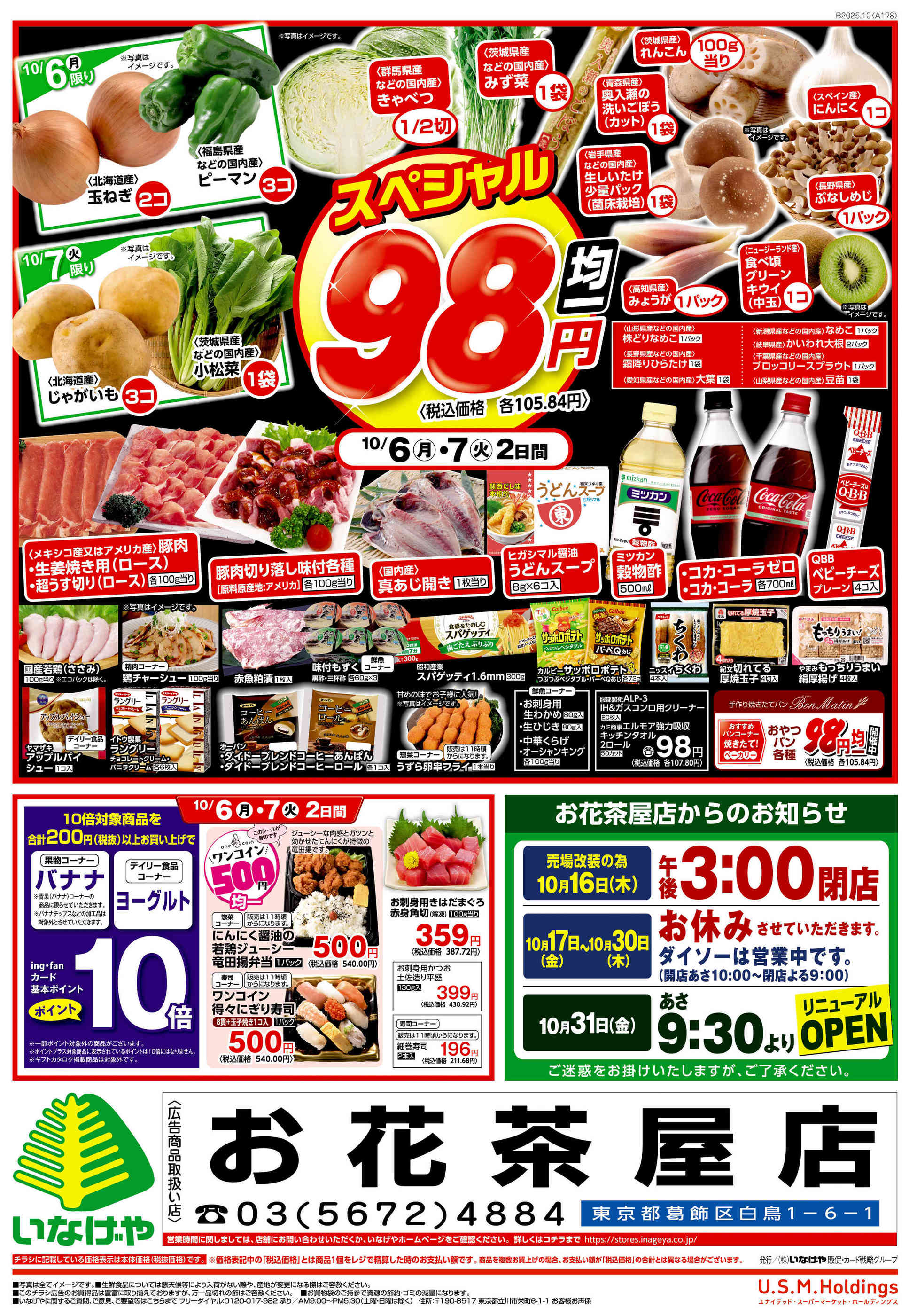 いなげやお花茶屋店今週のチラシ(2025年10月6日〜10月12日)