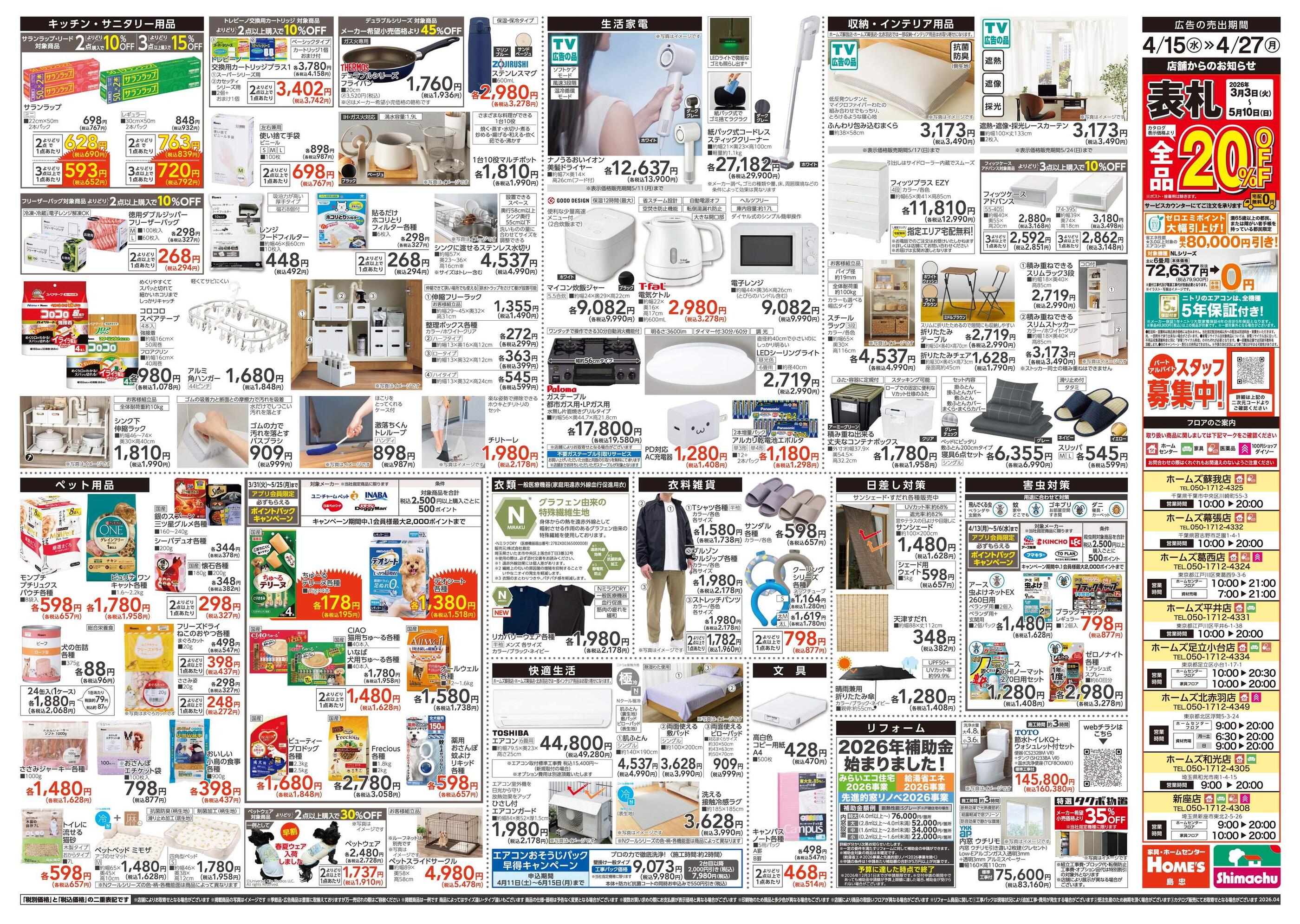 島忠ホームズ足立小台店今週のチラシ(2026年4月13日〜4月19日)