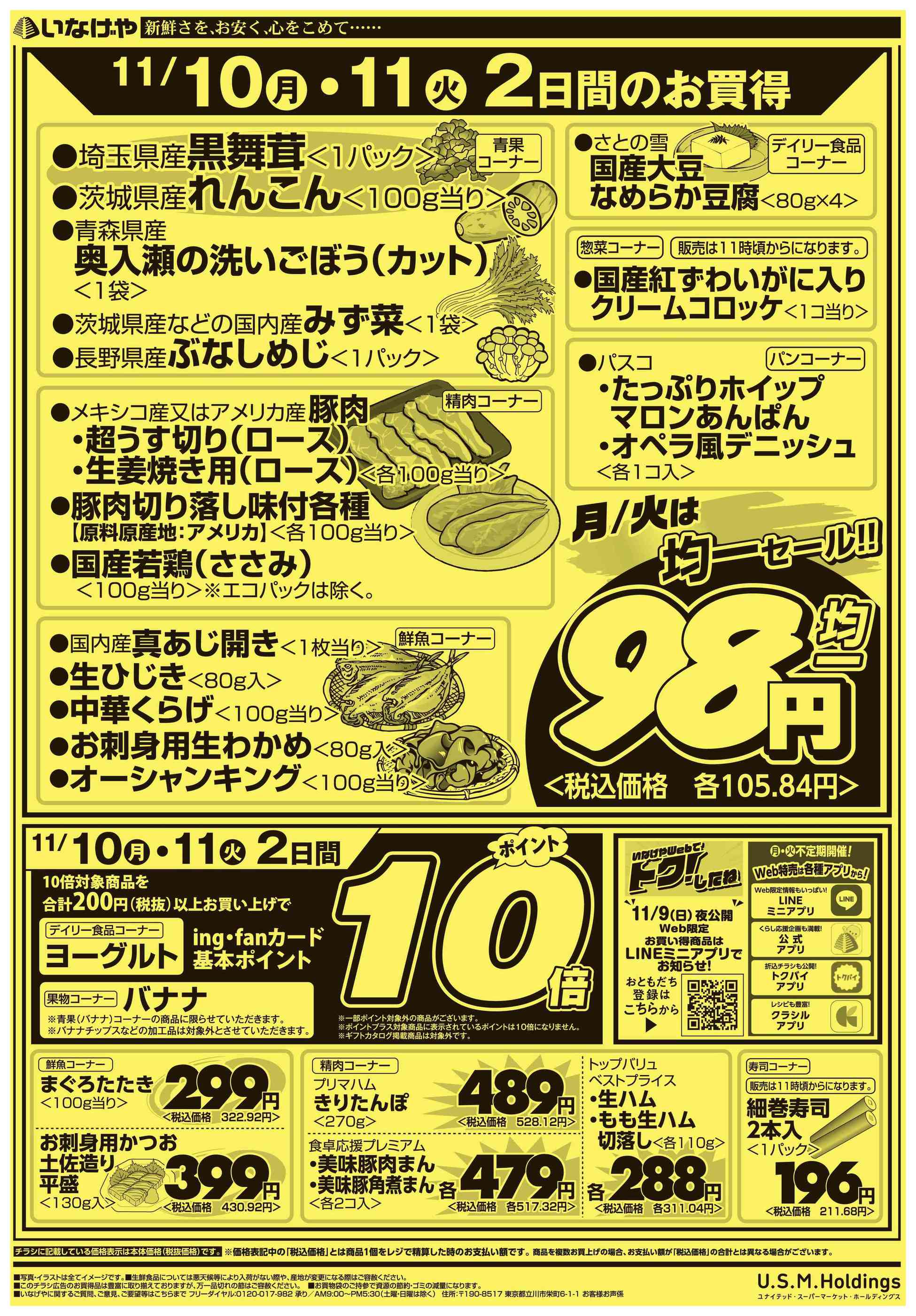 いなげや青梅師岡店今週のチラシ(2025年11月3日〜11月9日)