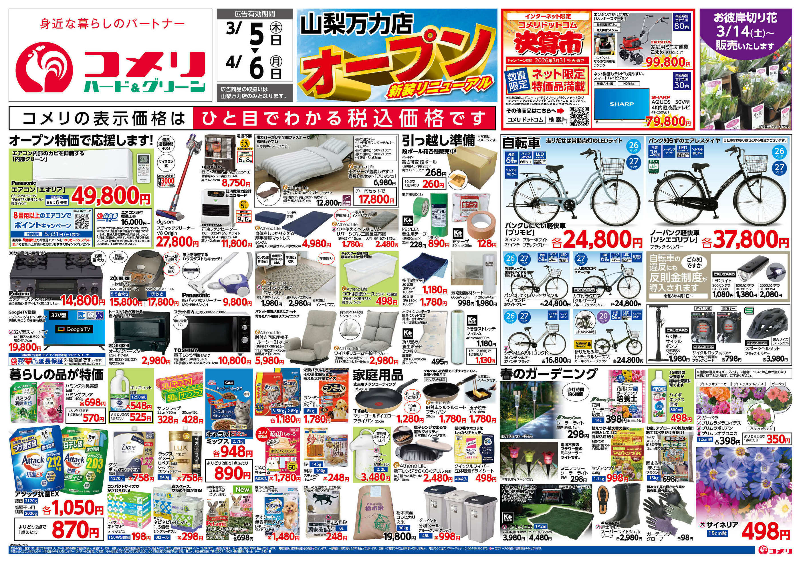 コメリハード&グリーン上河内店今週のチラシ(2026年3月9日〜3月15日)