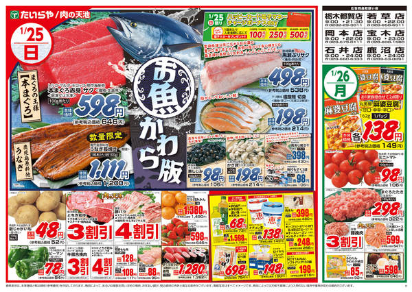 特売やセール情報など最新のチラシを掲載中。(2種類、2枚のチラシを掲載しています)