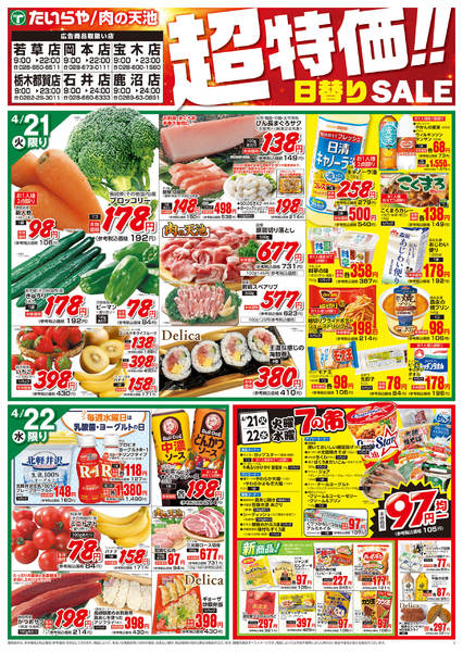 特売やセール情報など最新のチラシを掲載中。(1種類、2枚のチラシを掲載しています)