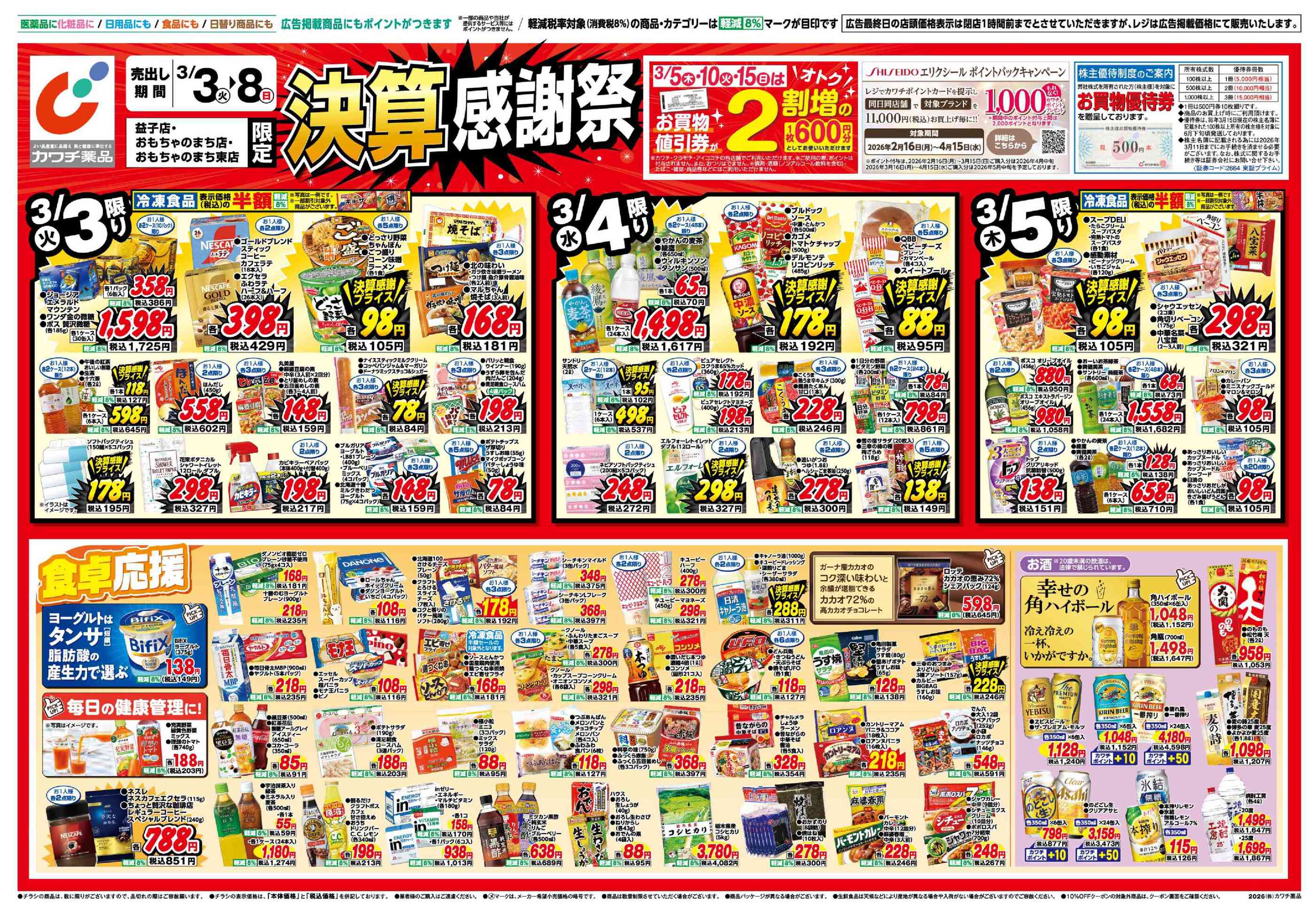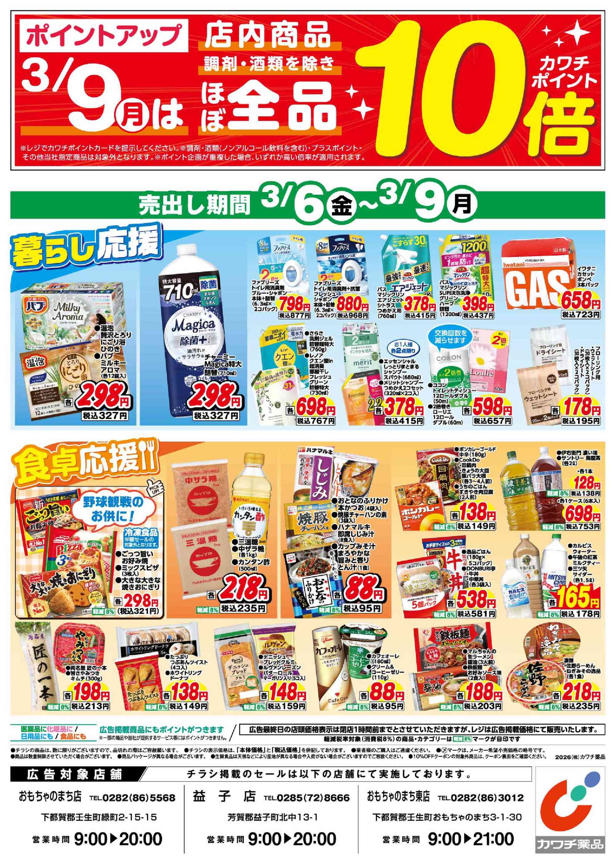 カワチ薬品益子店今週のチラシ(2026年3月2日〜3月8日)
