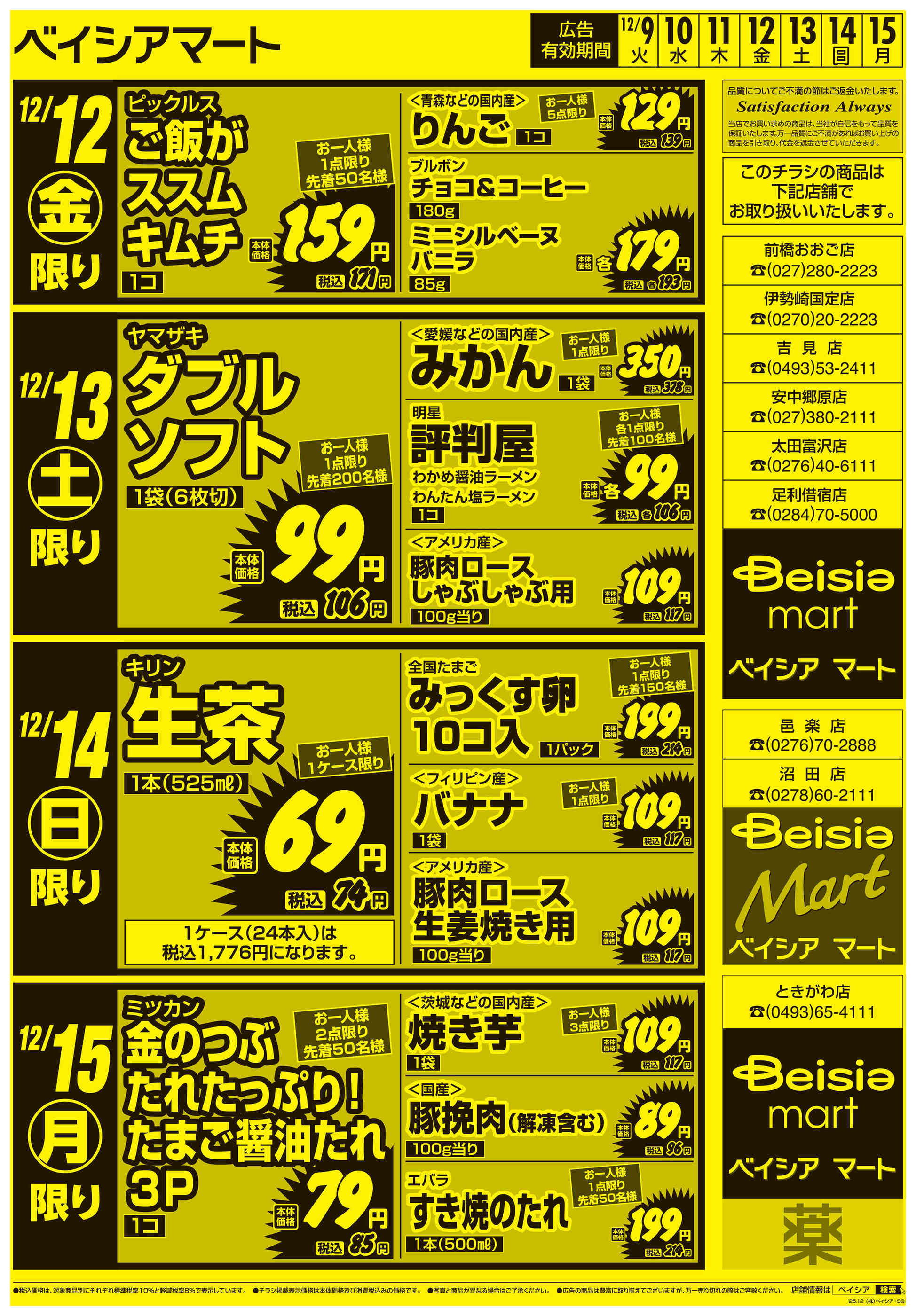 ベイシアマート足利借宿店今週のチラシ(2025年12月8日〜12月14日)