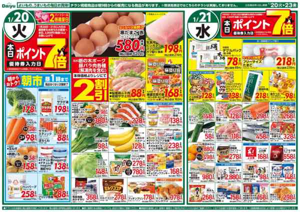 特売やセール情報など最新のチラシを掲載中。(3種類、6枚のチラシを掲載しています)