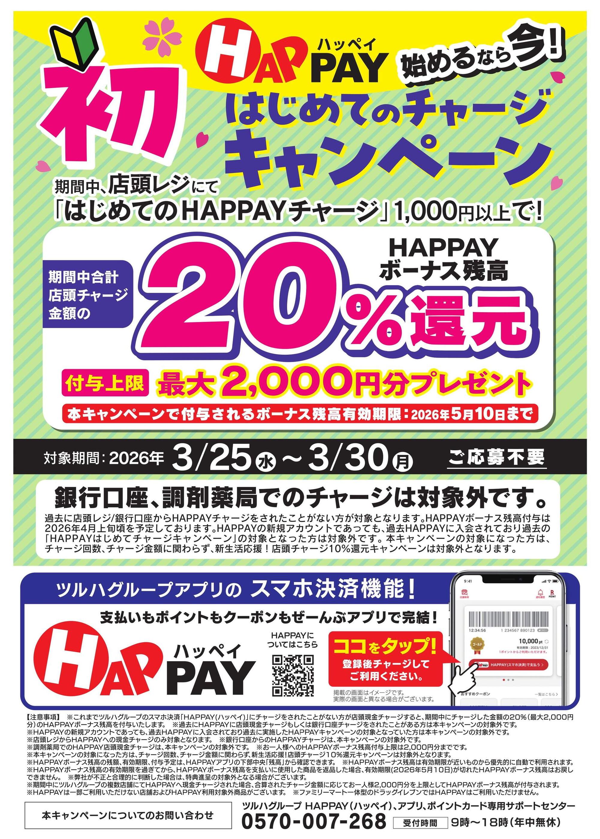 - 新生活応援!店頭チャージで10%還元!最大2,000円分のHAPPAYボーナスがもらえる!!new (1枚)