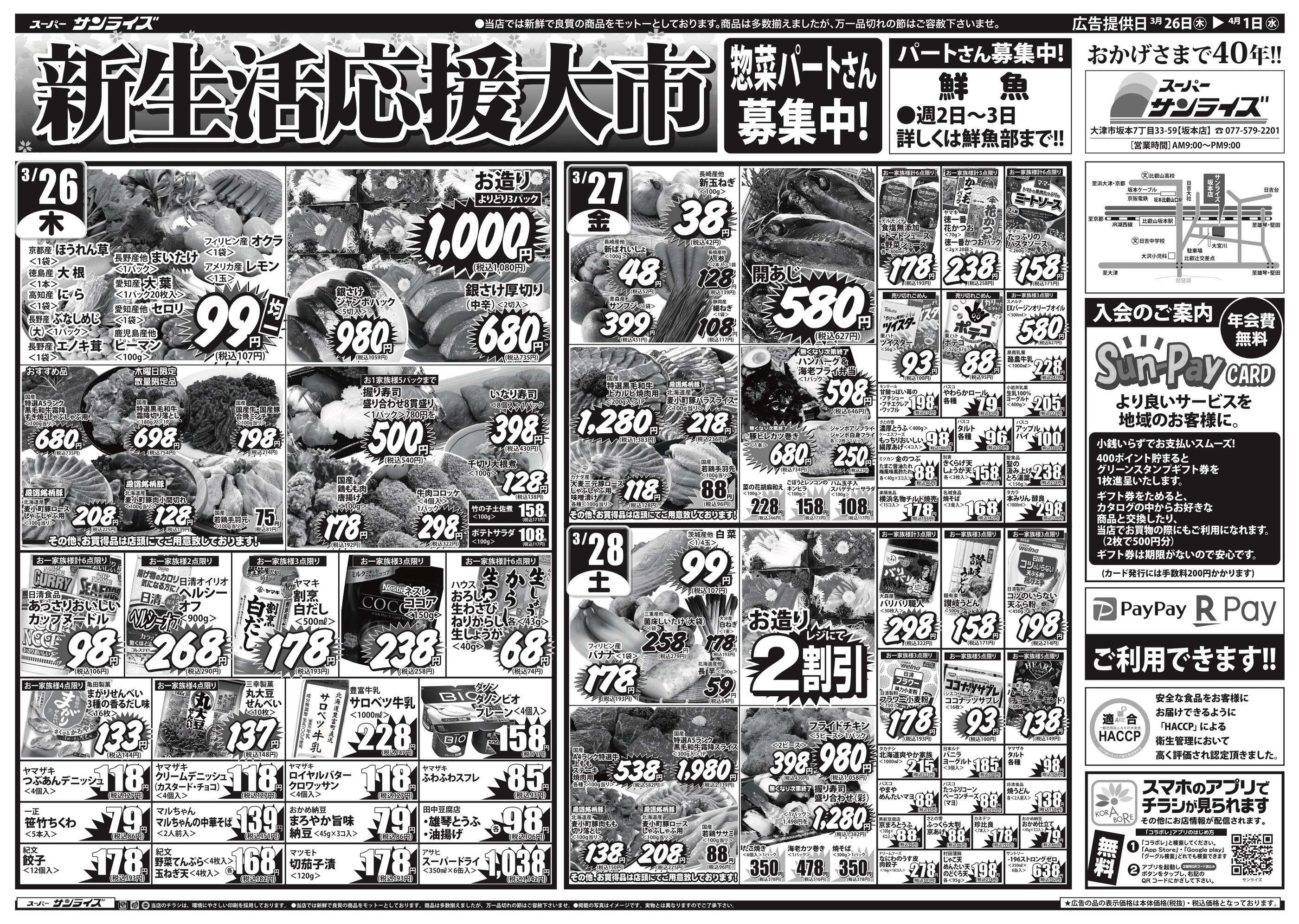 スーパーサンライズ 坂本店今週のチラシ(2026年3月30日〜4月5日)