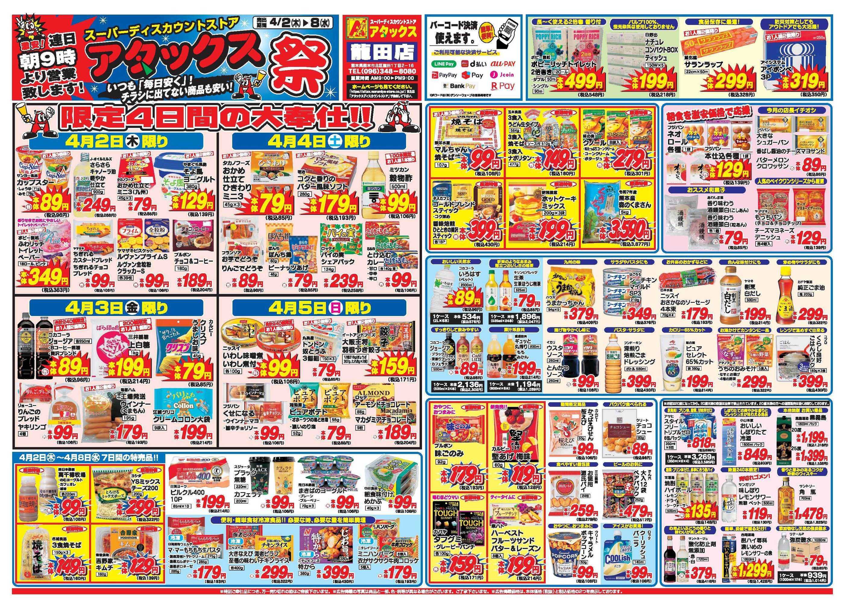 アタックス龍田店今週のチラシ(2026年3月30日〜4月5日)