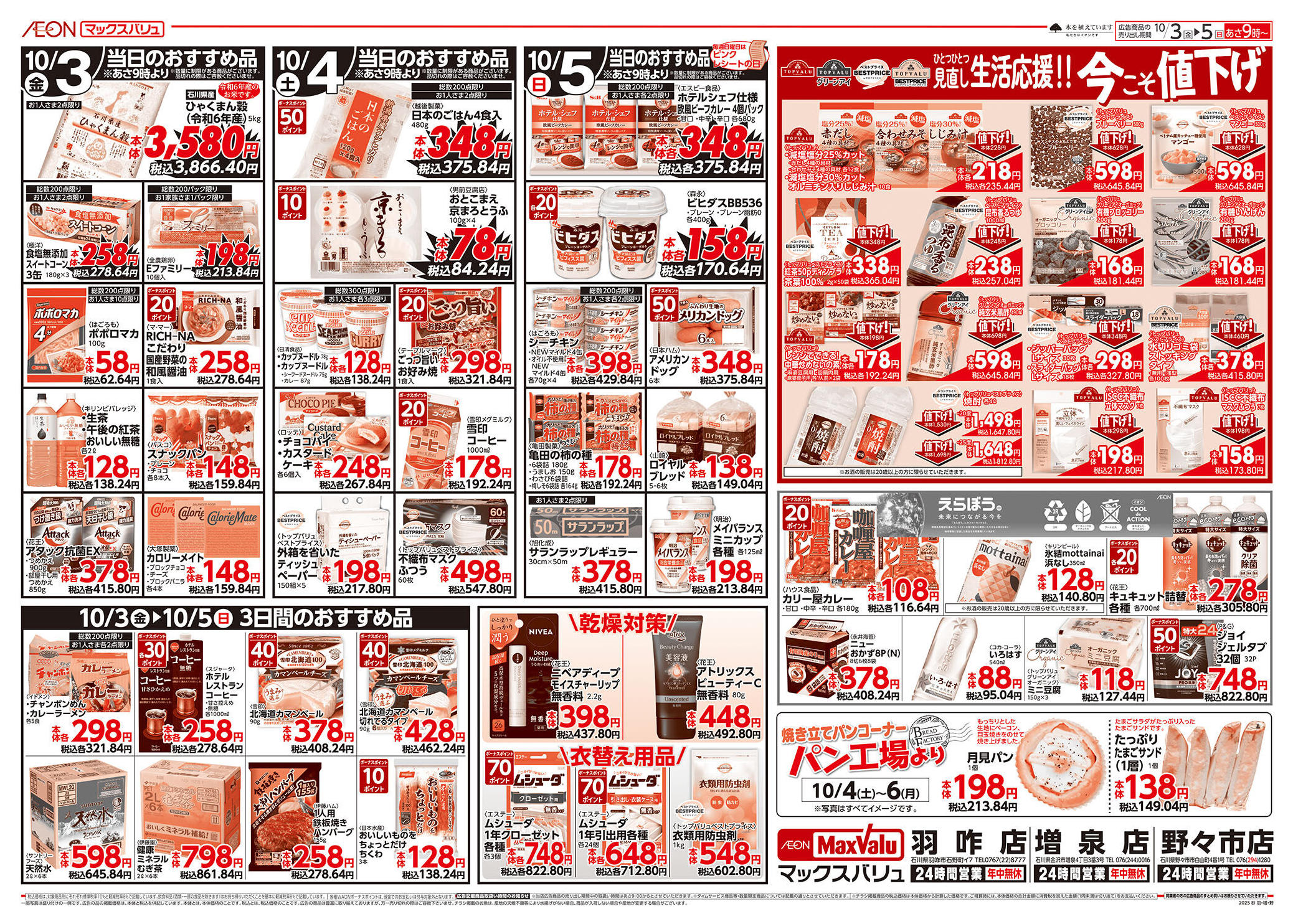 マックスバリュ羽咋店今週のチラシ(2025年10月6日〜10月12日)
