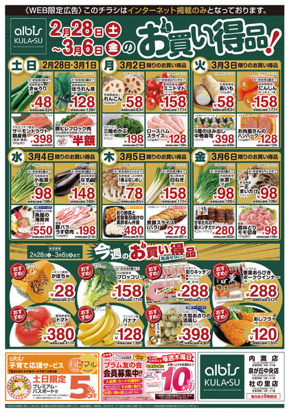特売やセール情報など最新のチラシを掲載中。(1種類、2枚のチラシを掲載しています)