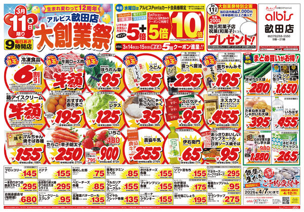 ※「店舗の掲載内容について」チラシガイドに掲載している情報は、独自に調査した内容及びユーザーから頂いた情報を掲載しています。お気づきの点がございましたら「お問い合わせ」よりご連絡ください。また店舗の営業状況、商品に関するお問い合わせは直接店舗事業者にご確認ください。