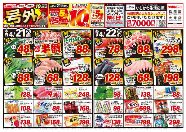 ※「店舗の掲載内容について」チラシガイドに掲載している情報は、独自に調査した内容及びユーザーから頂いた情報を掲載しています。お気づきの点がございましたら「お問い合わせ」よりご連絡ください。また店舗の営業状況、商品に関するお問い合わせは直接店舗事業者にご確認ください。