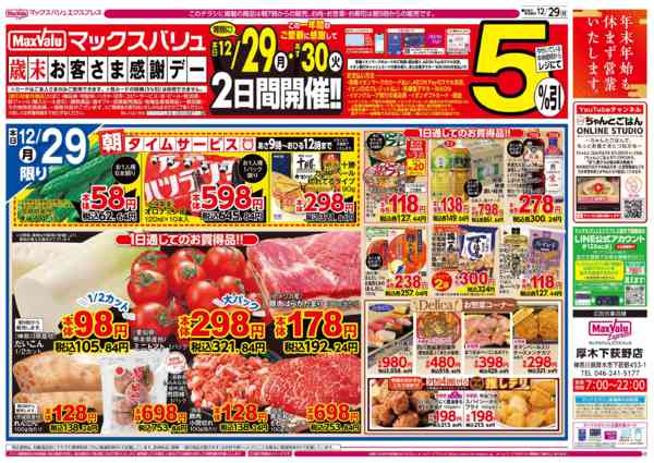 特売やセール情報など最新のチラシを掲載中。(2種類、5枚のチラシを掲載しています)