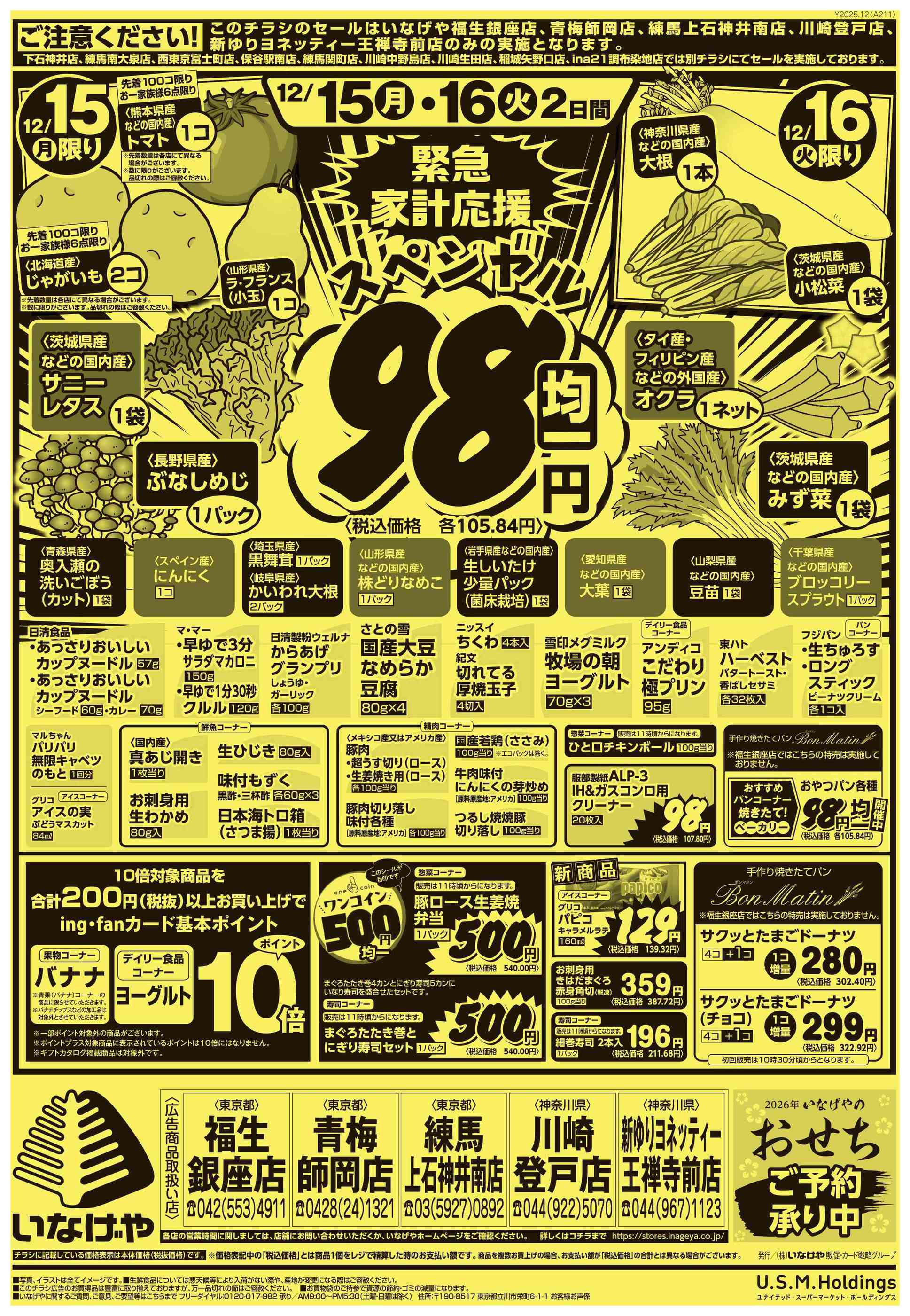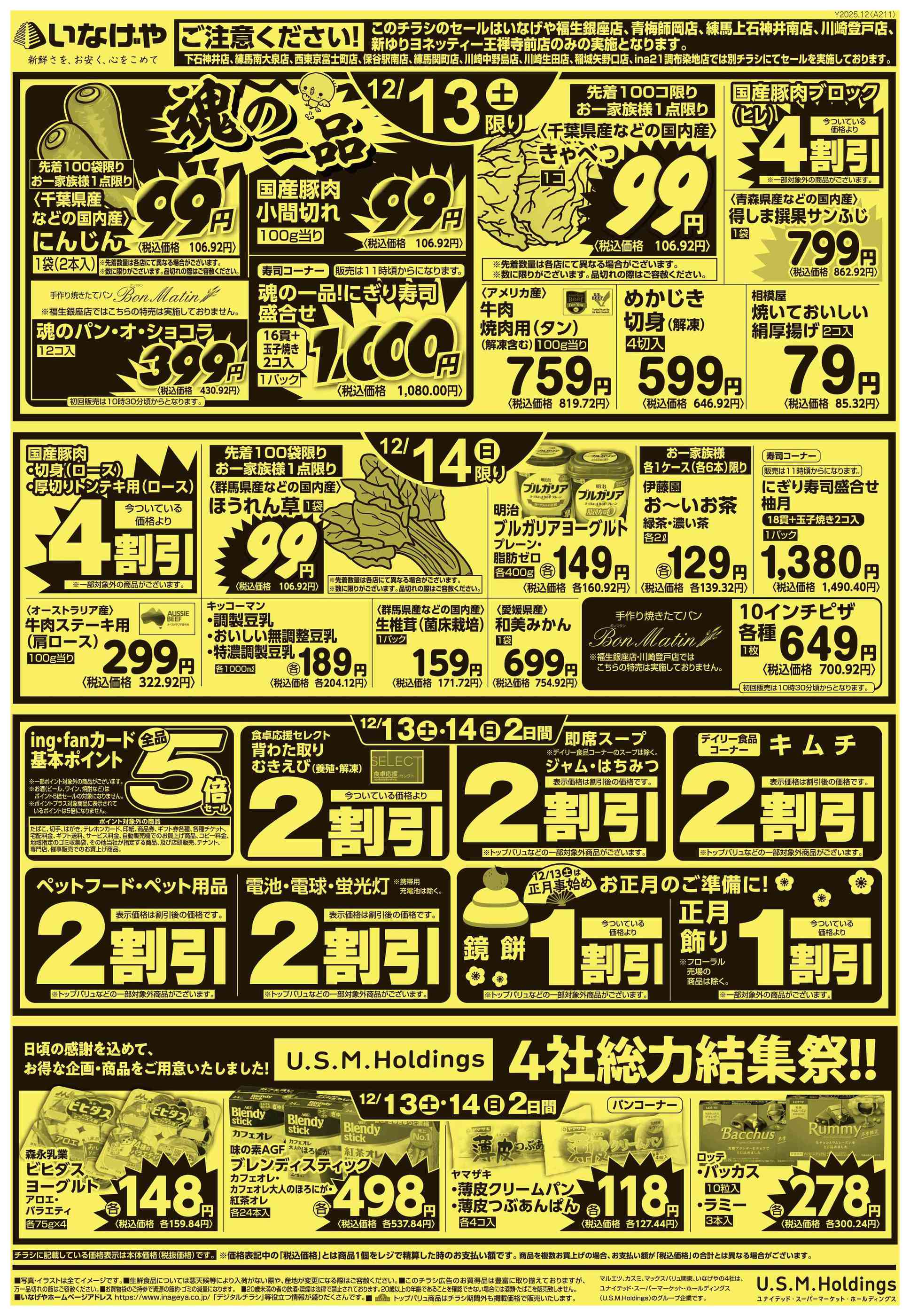 いなげや新ゆりヨネッティー王禅寺前店今週のチラシ(2025年12月22日〜12月28日)