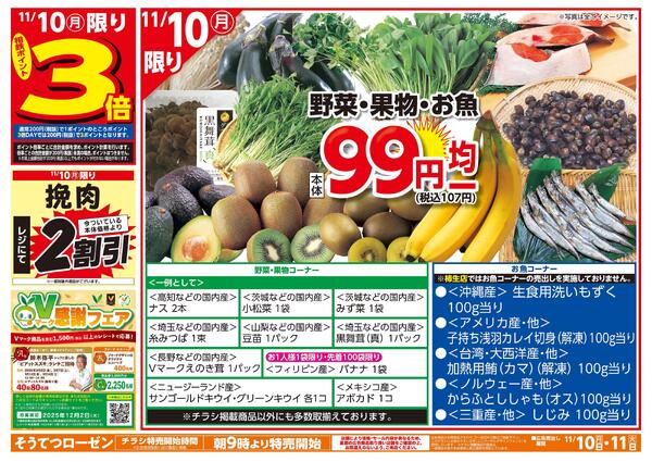 特売やセール情報など最新のチラシを掲載中。(9種類、11枚のチラシを掲載しています)