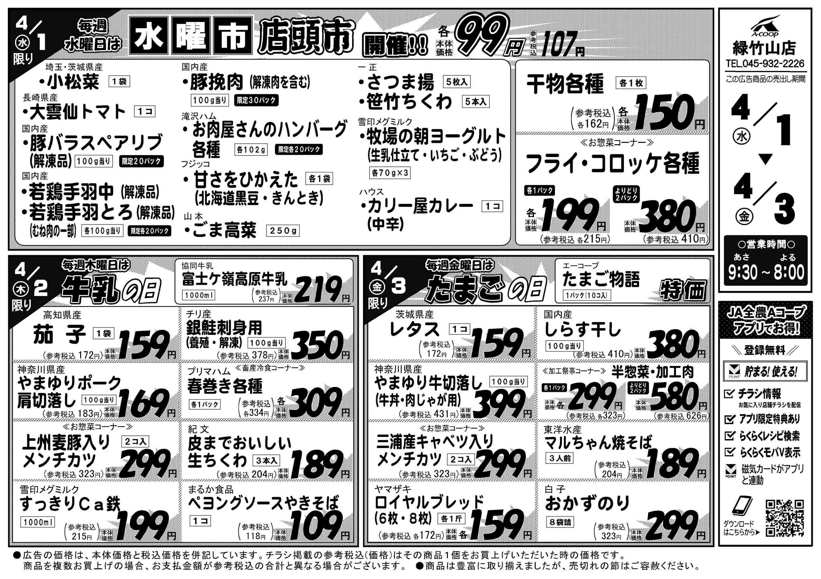 Aコープ緑竹山店今週のチラシ(2026年4月6日〜4月12日)
