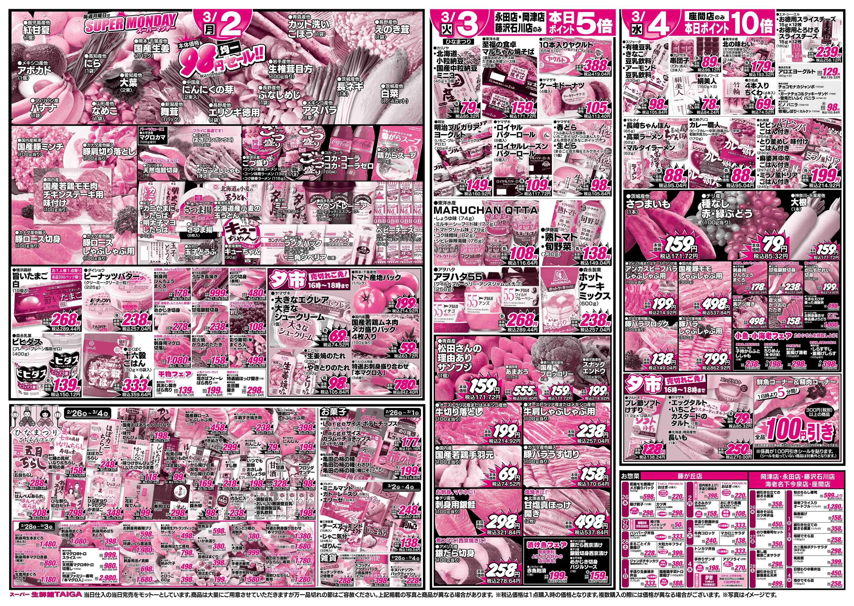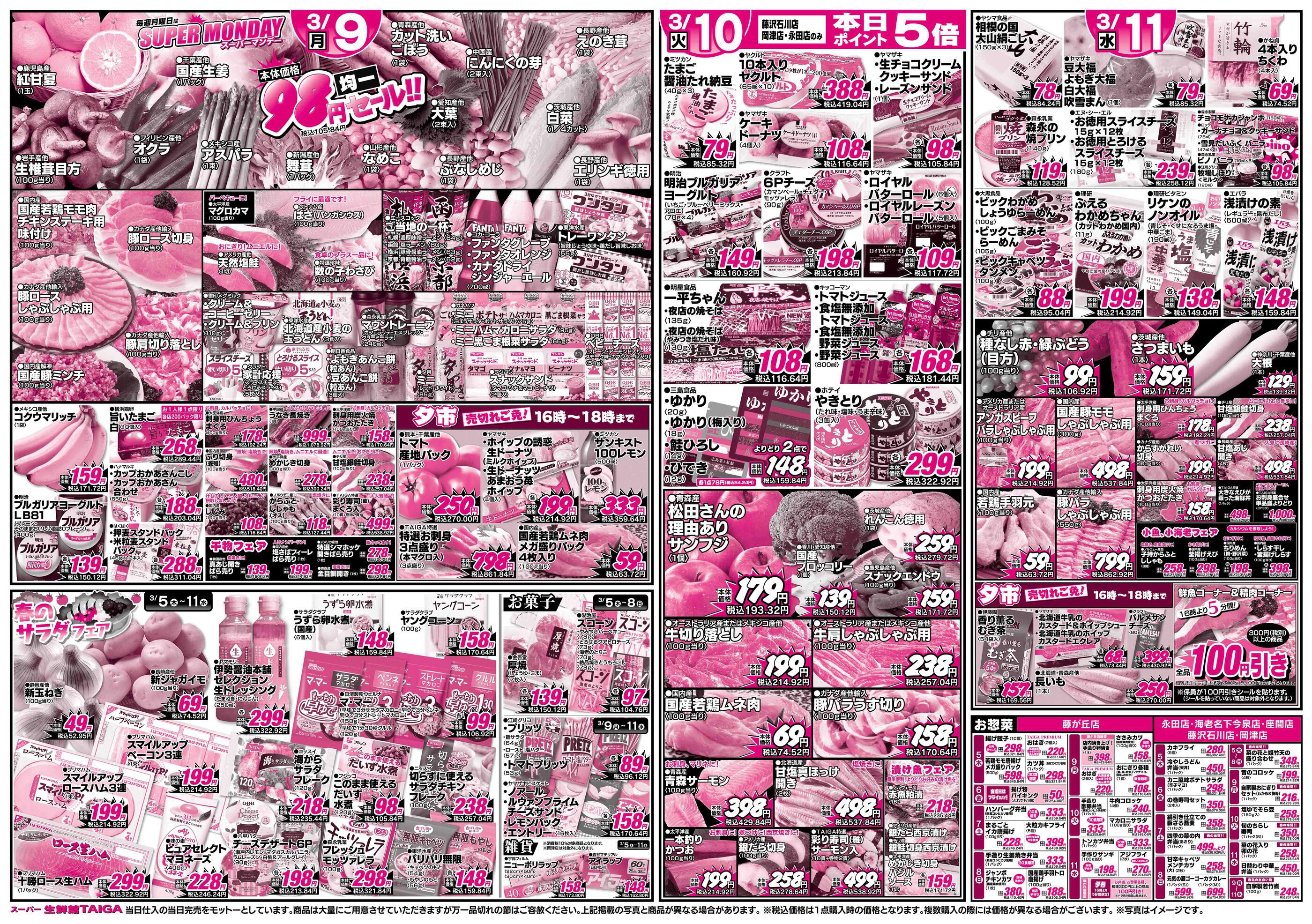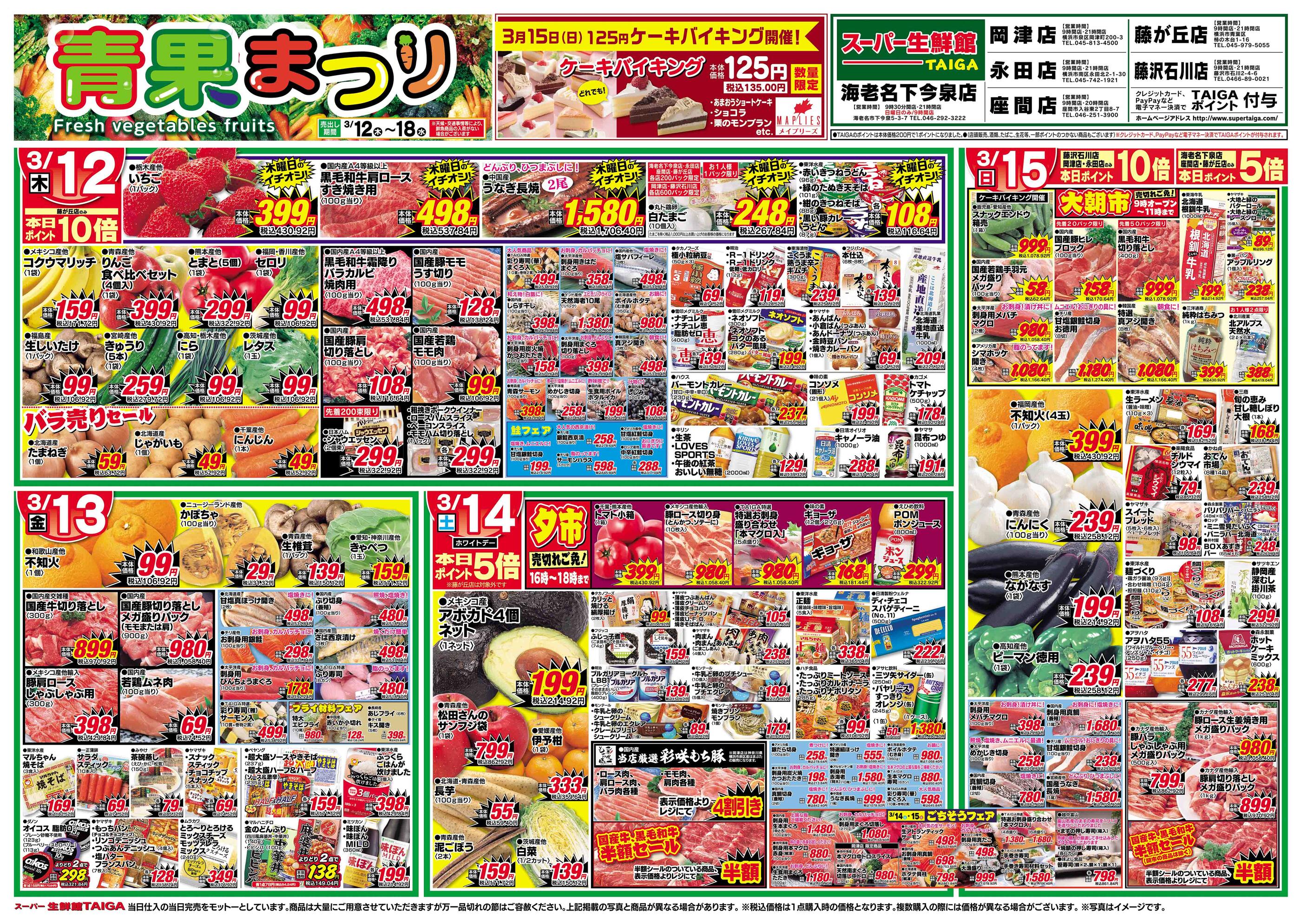 スーパー生鮮館TAIGA 藤が丘店今週のチラシ(2026年3月9日〜3月15日)