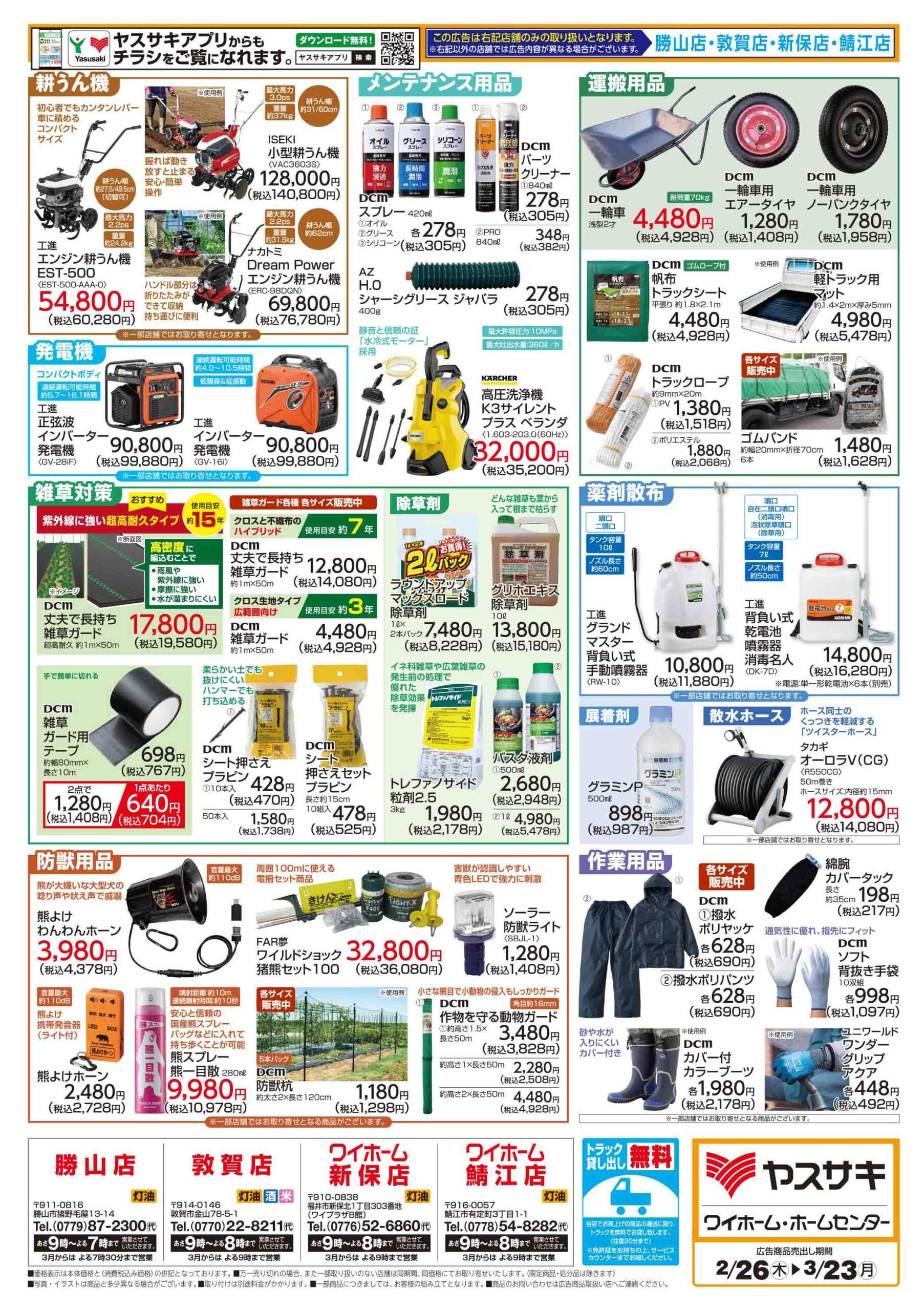 ヤスサキホームセンター敦賀店2026-03-20更新