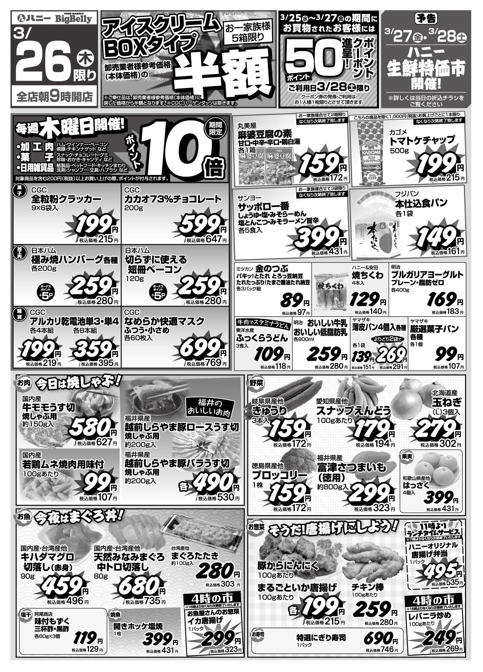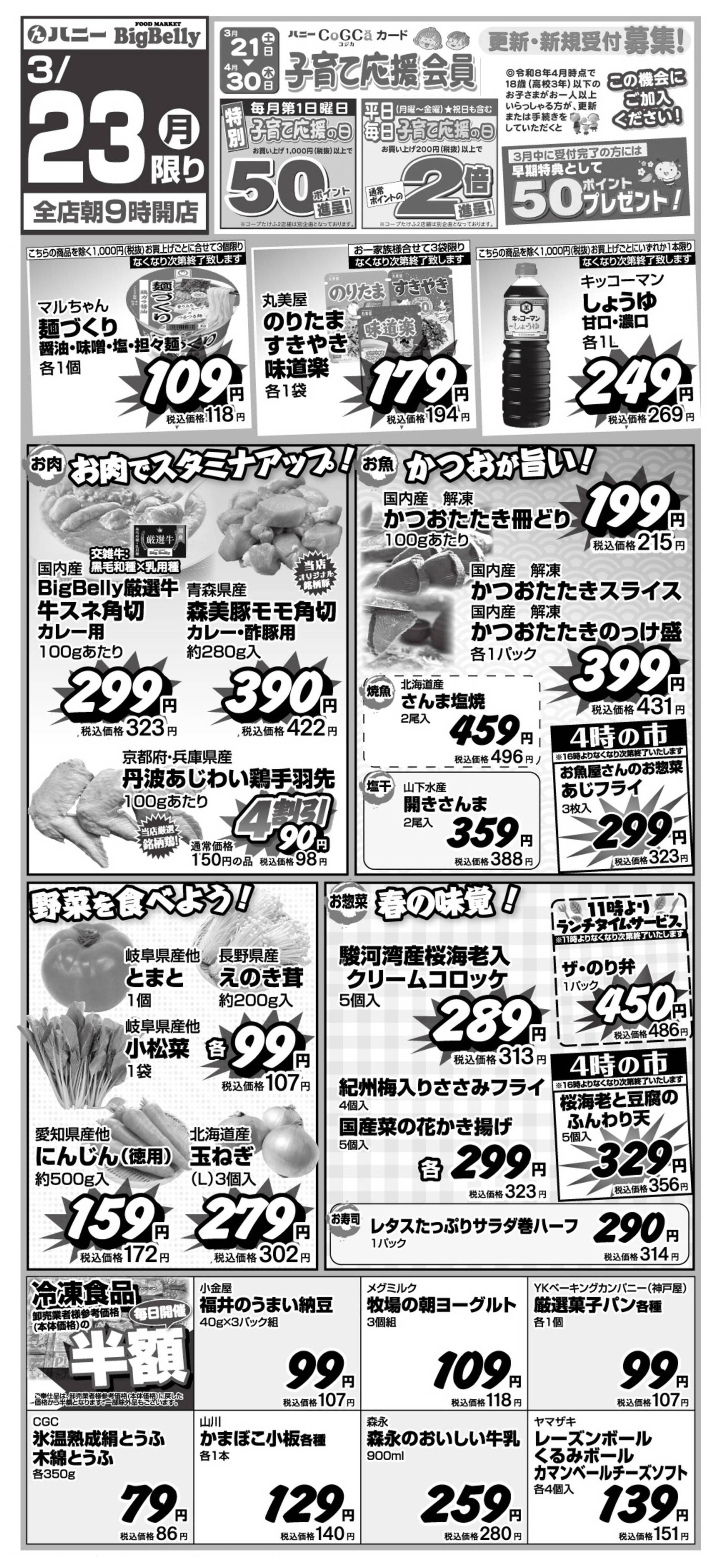 ハニービッグベリーマーケット北野今週のチラシ(2026年3月23日〜3月29日)