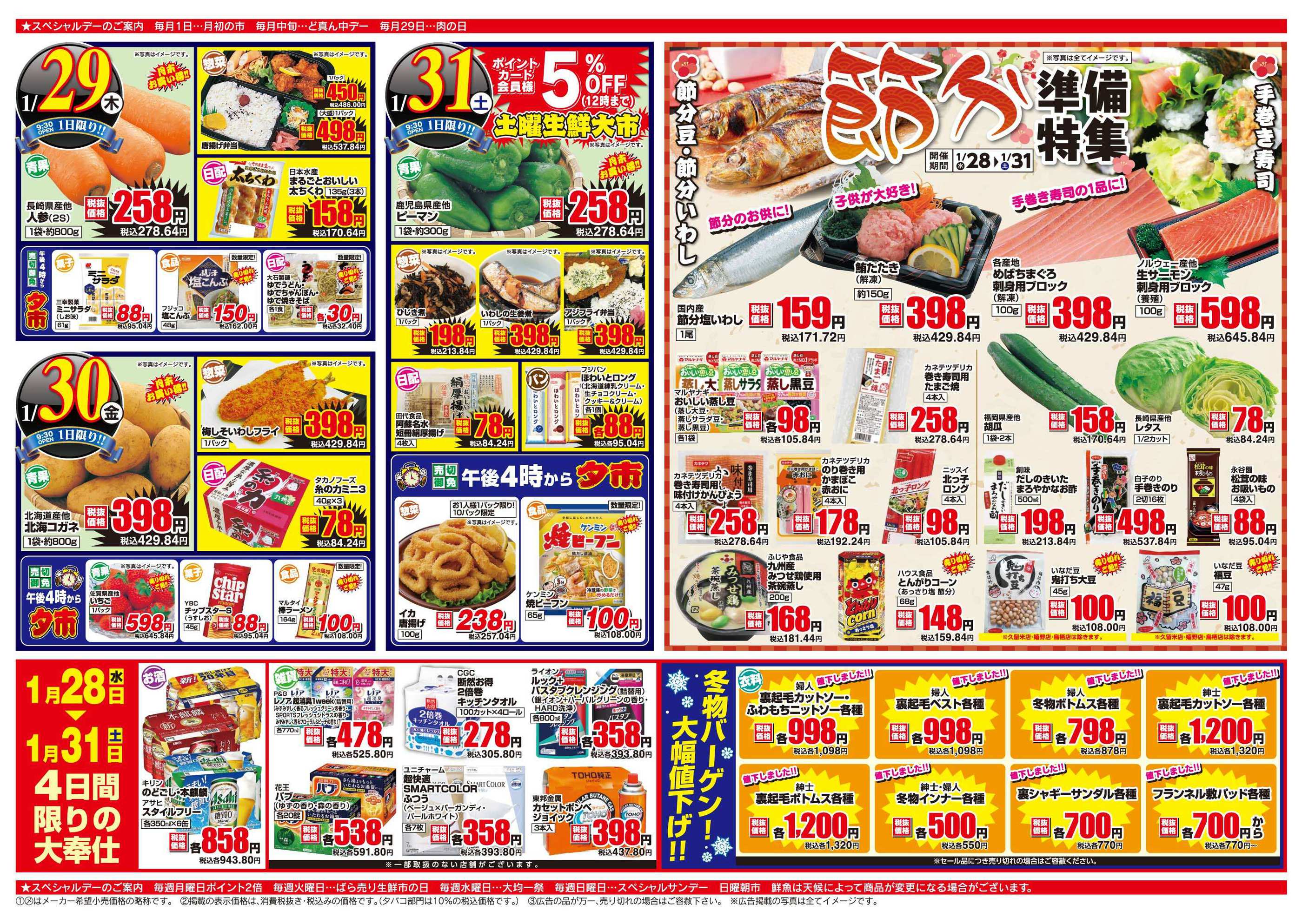 特売やセール情報など最新のチラシを掲載中。(5種類、5枚のチラシを掲載しています)