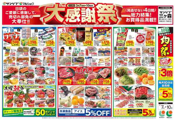 特売やセール情報など最新のチラシを掲載中。(3種類、3枚のチラシを掲載しています)
