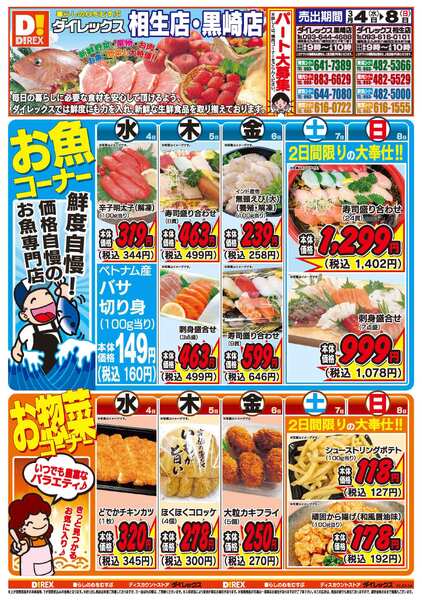 特売やセール情報など最新のチラシを掲載中。(7種類、16枚のチラシを掲載しています)