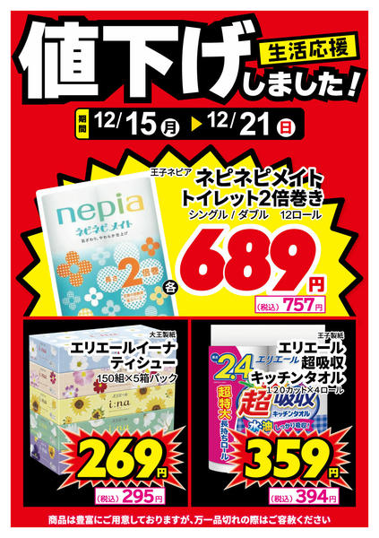 - 2025年12月15〜21日まで食品、紙製品、値下げしました!new (1枚)
