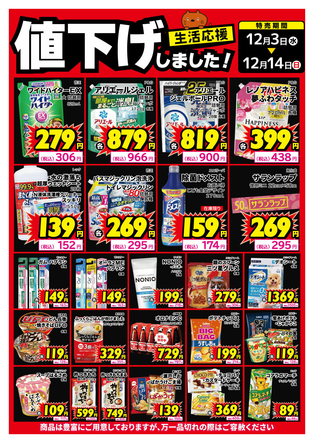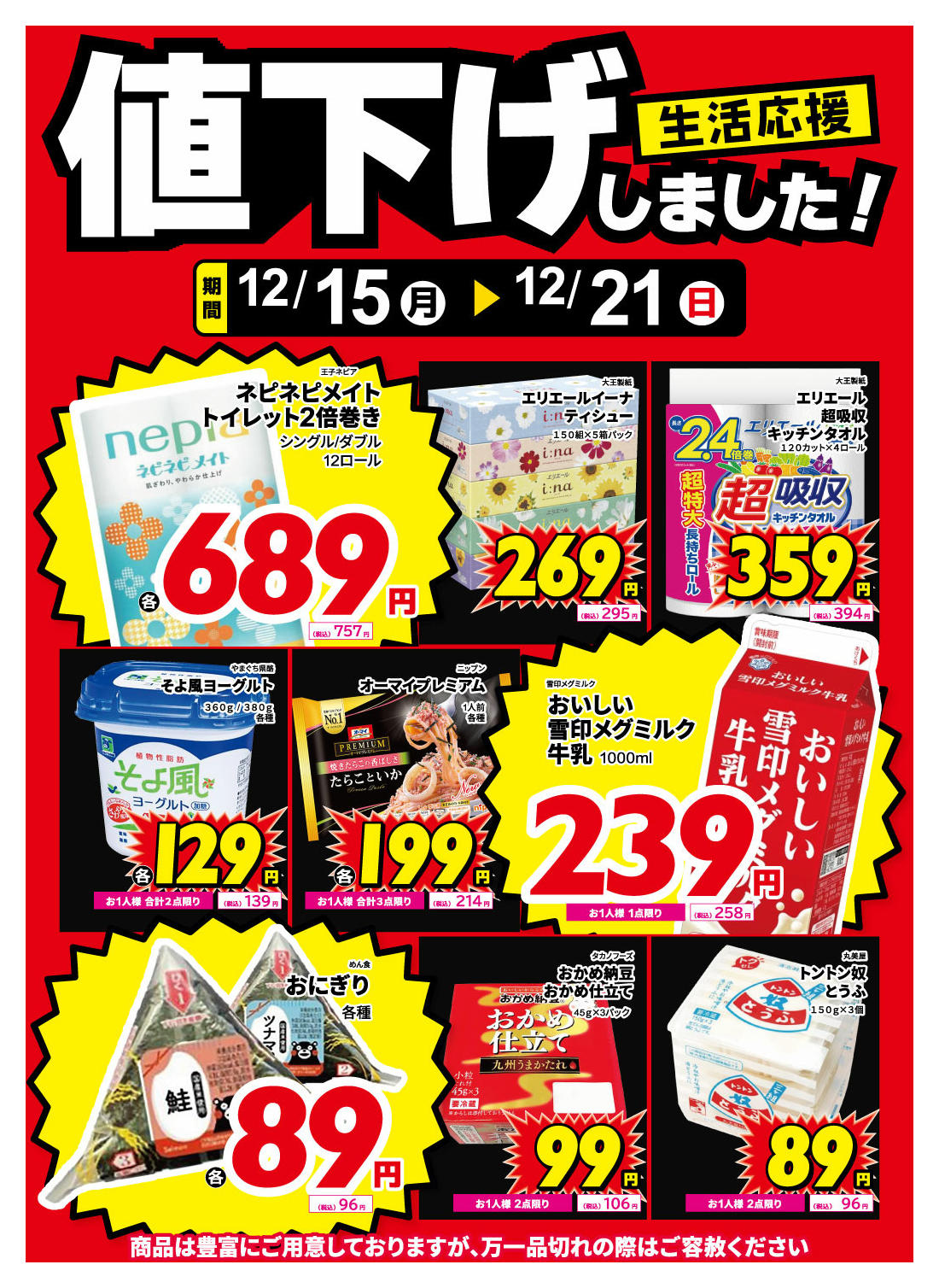 - 2025年12月15〜21日まで食品、紙製品、値下げしました!new (1枚)