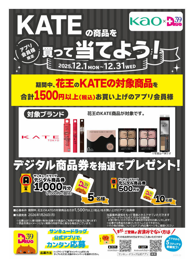 - 2025年12月11〜20日までKATEの商品を買って当てよう! (1枚)