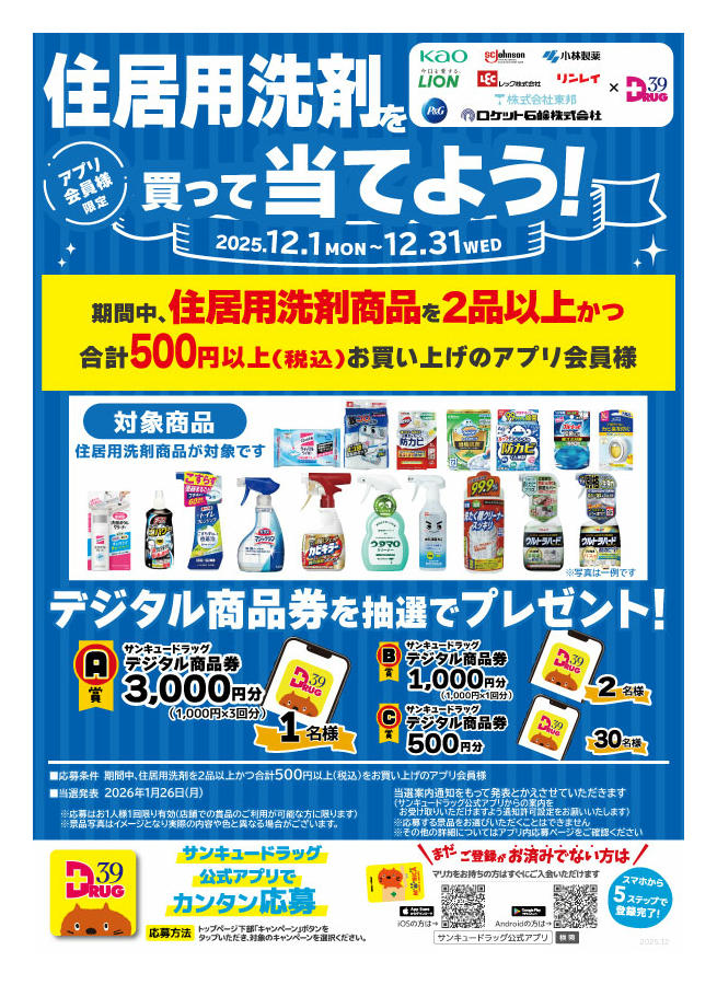 - 2025年12月11〜20日まで住居用洗剤を買って当てよう! (1枚)