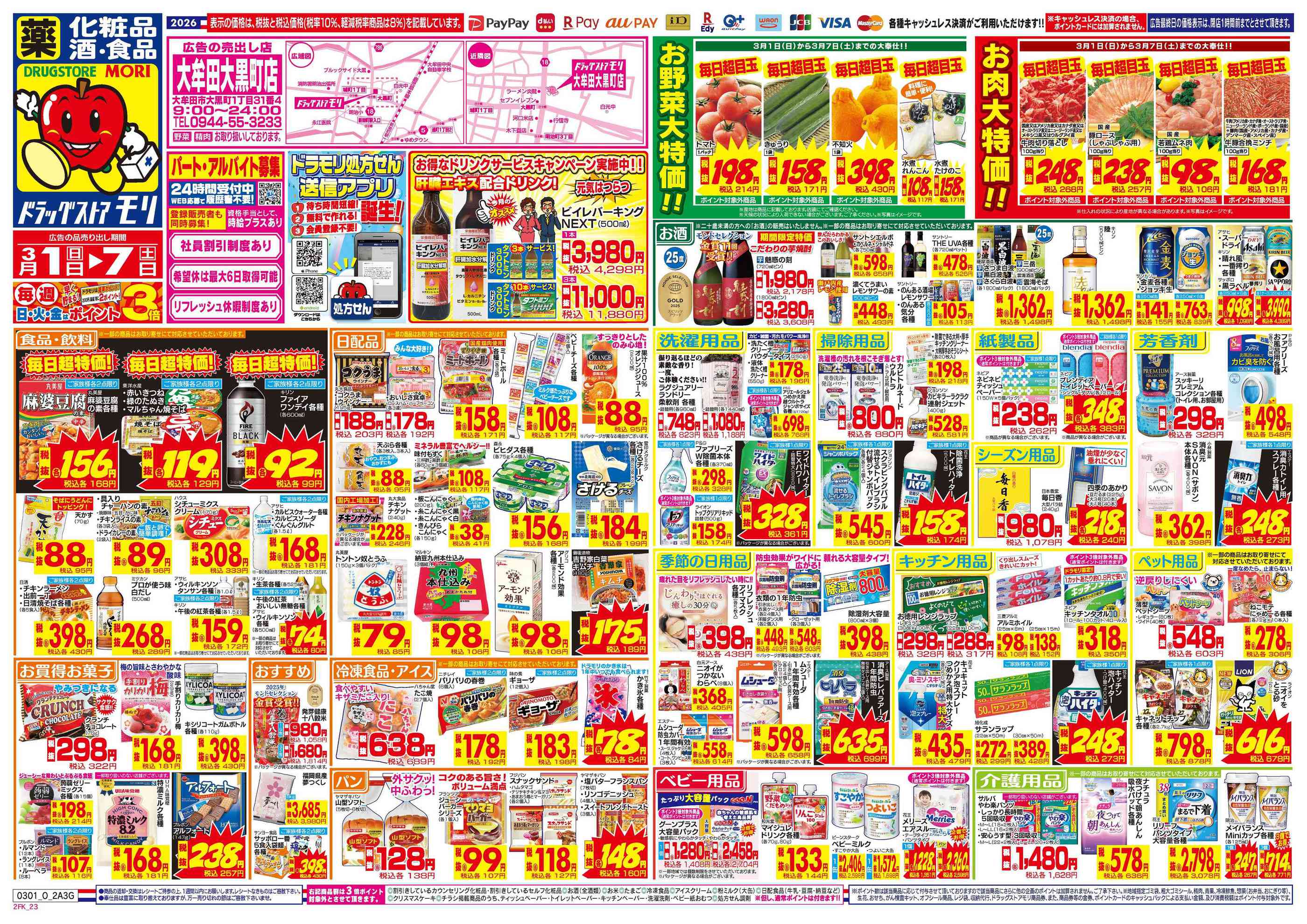 ドラッグストアモリ大牟田大黒町店今週のチラシ(2026年3月2日〜3月8日)
