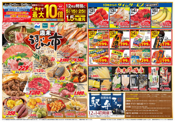 特売やセール情報など最新のチラシを掲載中。(12種類、13枚のチラシを掲載しています)