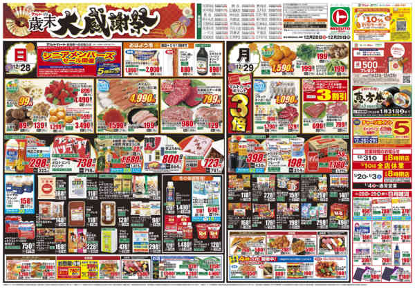 特売やセール情報など最新のチラシを掲載中。(2種類、5枚のチラシを掲載しています)