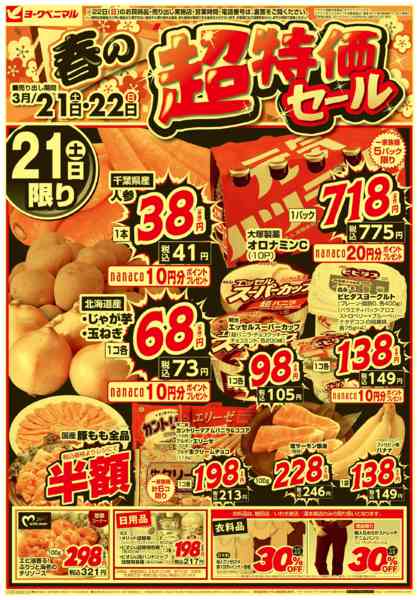 ※「店舗の掲載内容について」チラシガイドに掲載している情報は、独自に調査した内容及びユーザーから頂いた情報を掲載しています。お気づきの点がございましたら「お問い合わせ」よりご連絡ください。また店舗の営業状況、商品に関するお問い合わせは直接店舗事業者にご確認ください。