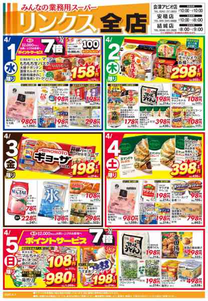 特売やセール情報など最新のチラシを掲載中。(2種類、4枚のチラシを掲載しています)