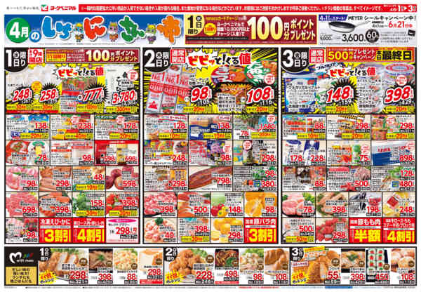 特売やセール情報など最新のチラシを掲載中。(4種類、4枚のチラシを掲載しています)