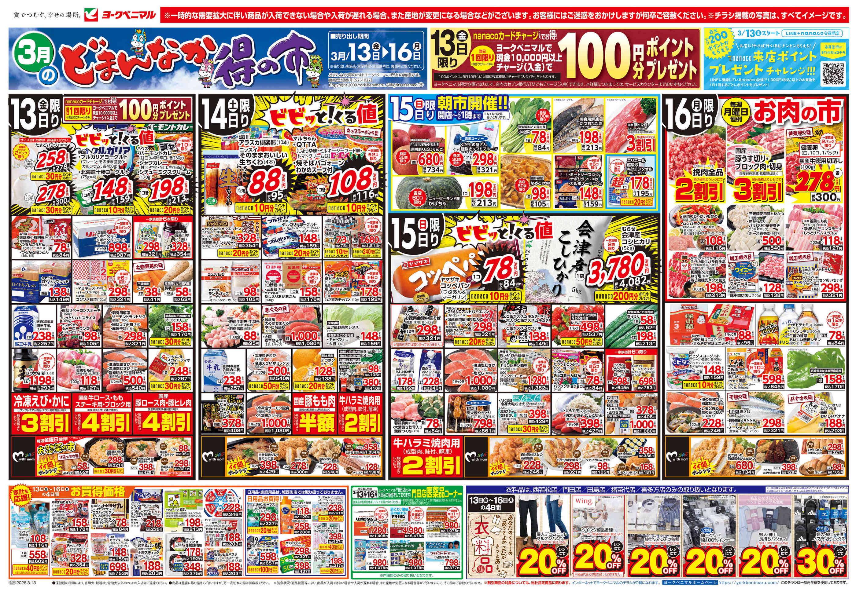 ヨークベニマル会津坂下店今週のチラシ(2026年3月9日〜3月15日)